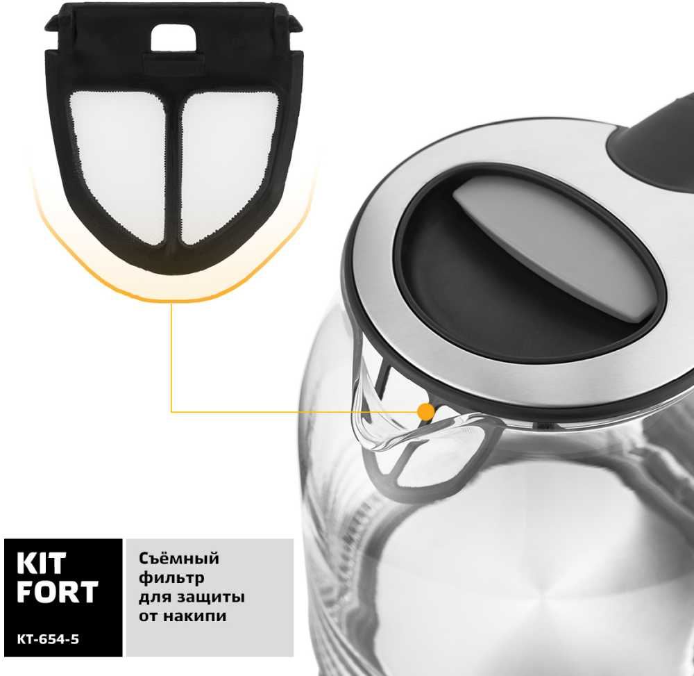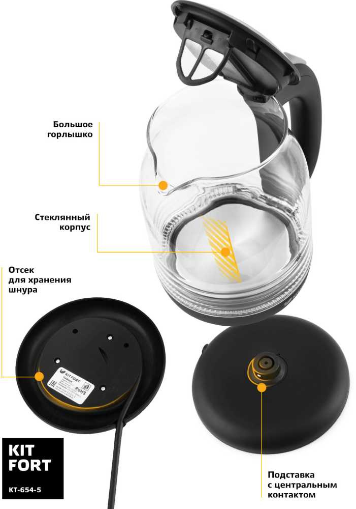 кнопка открытия крышки, подсветка воды, подставка 360, фильтр от накипи