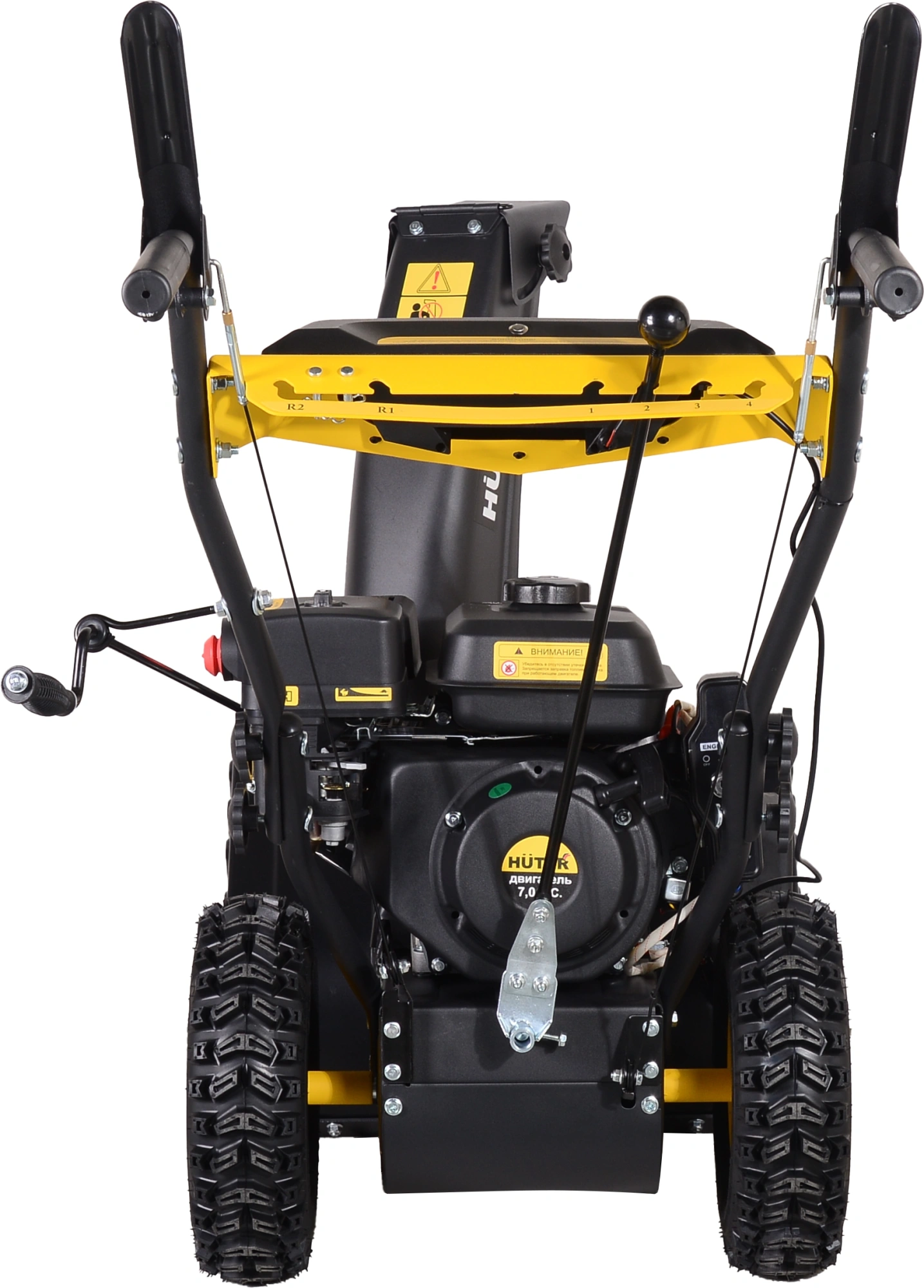 Снегоуборщик в сборе с двигателем, Рычаг поворота желоба, ограничительные башмаки 2шт, рукоятка управления с панелью в разборе, крепежный комплект, паспорт изделия