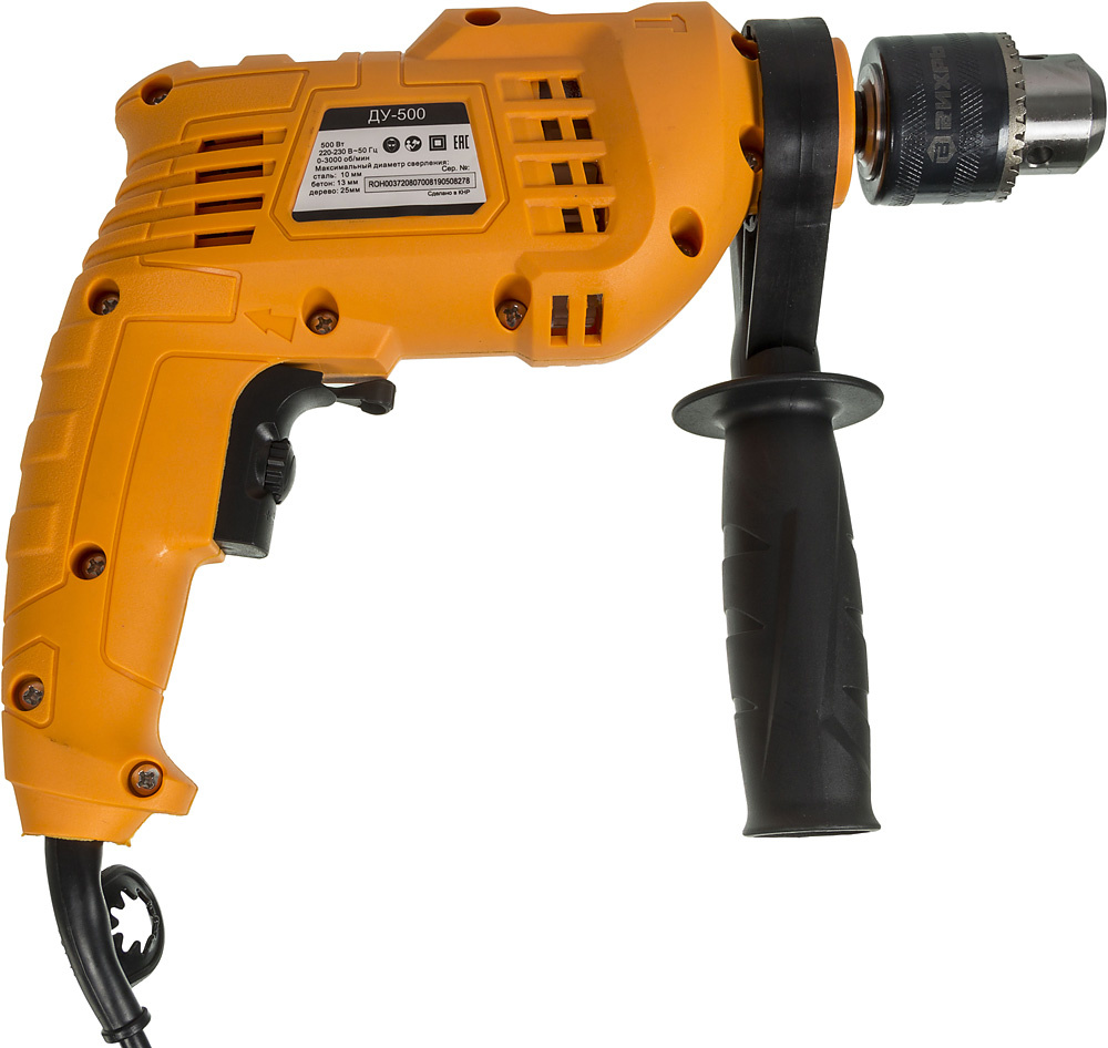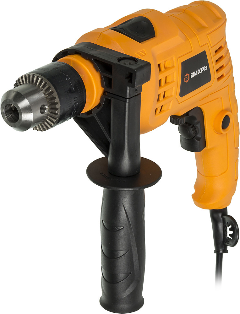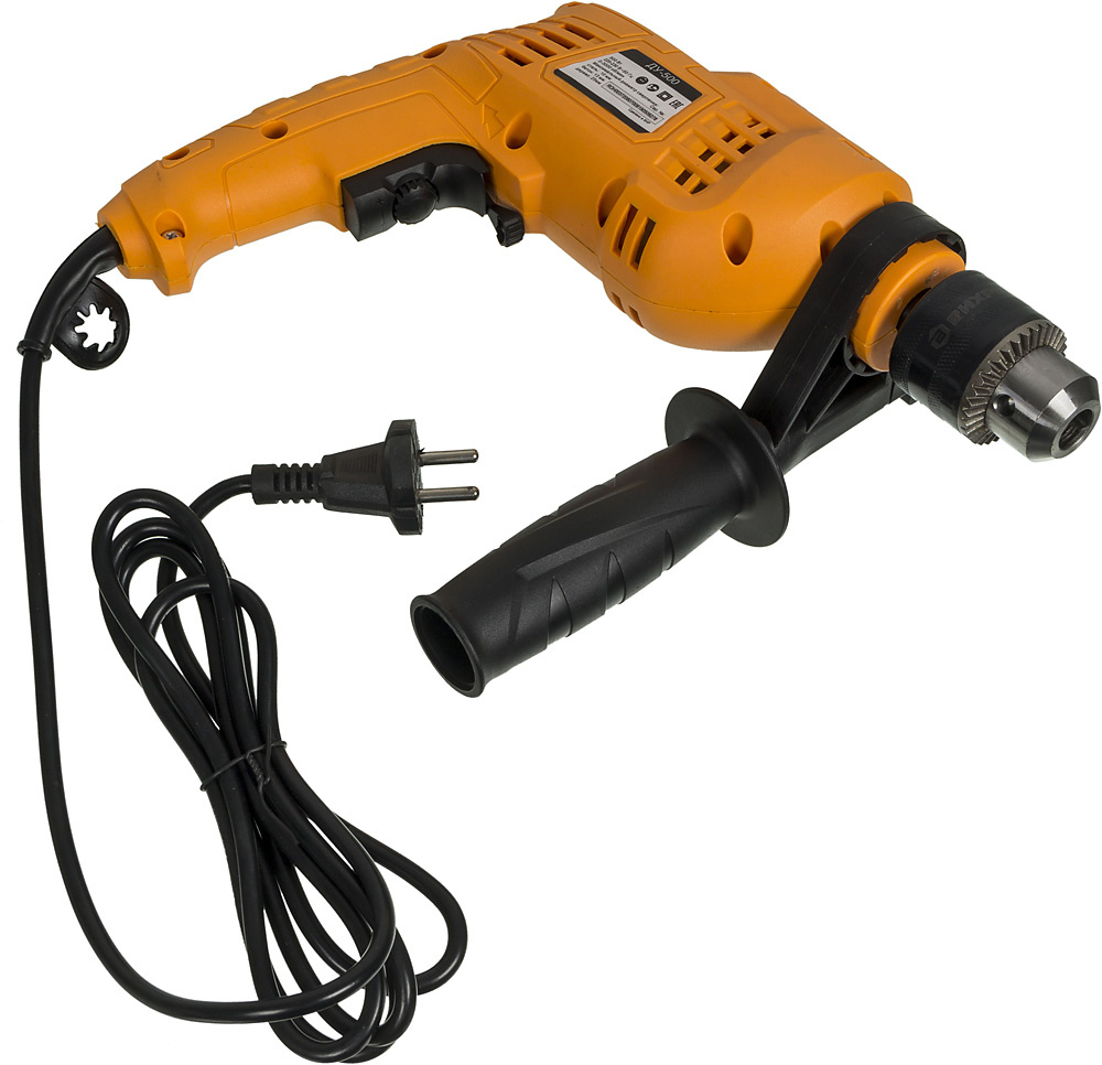 Ударная дрель, ограничитель глубины, дополнительная рукоять, инструкция, коробка.