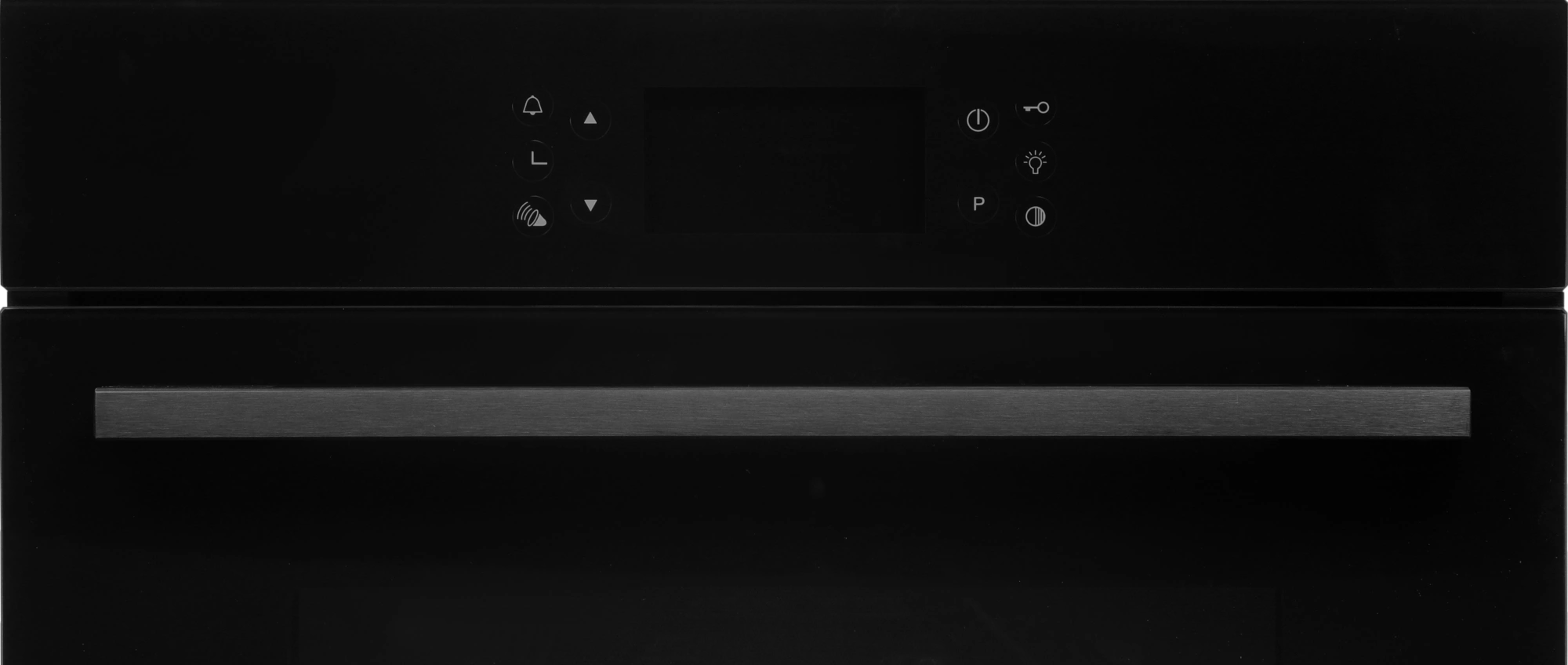 Встраиваемый электрический шкаф со стеклянным фасадом черного цвета, 11 режимов работы, тангенциальное охлаждение, электронный таймер, подсветка, конвектор, гриль, терморегулятор, программатор.