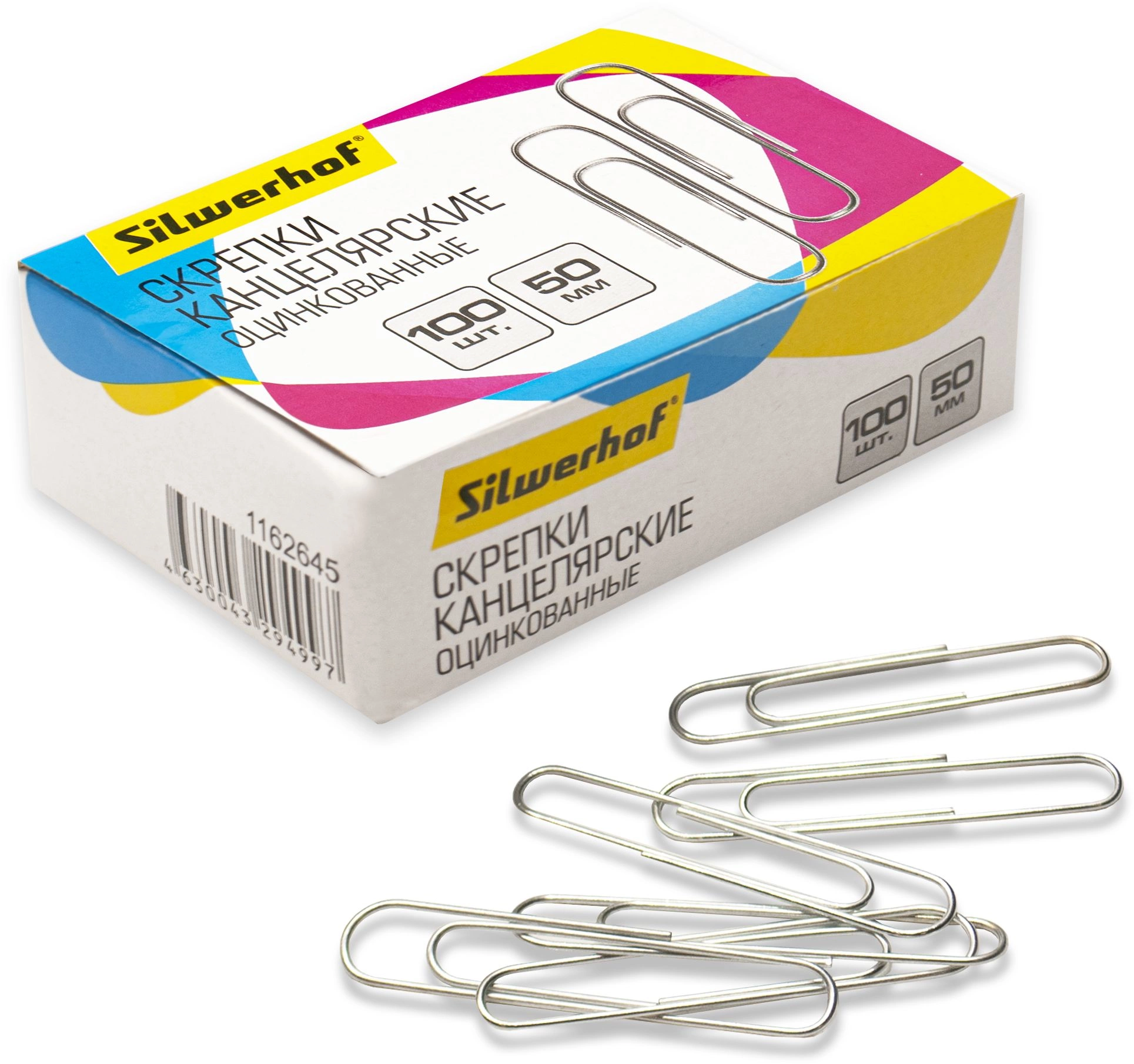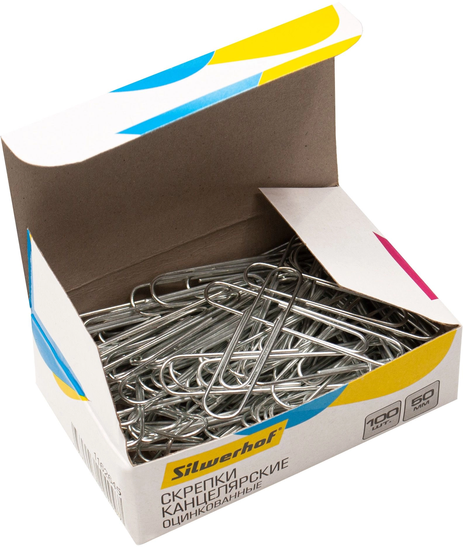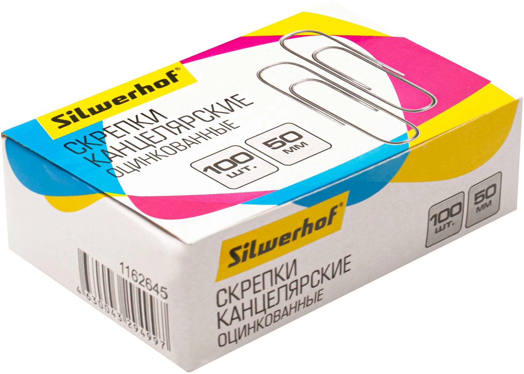 Скрепки Silwerhof 491037 металл оцинкованные 50мм (упак.:100шт) картонная коробка