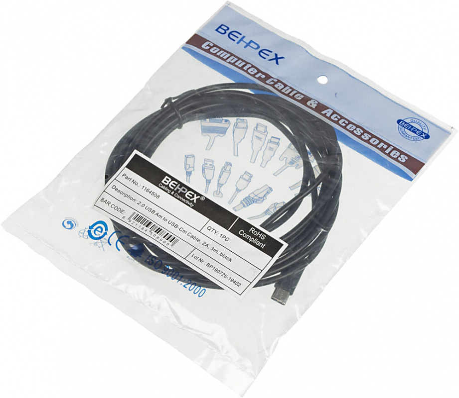 Кабель с металлическими коннекторами для передачи данных между персональными компьютерами и смартфонами, планшетами и прочими устройствами с портом USB Type-C.