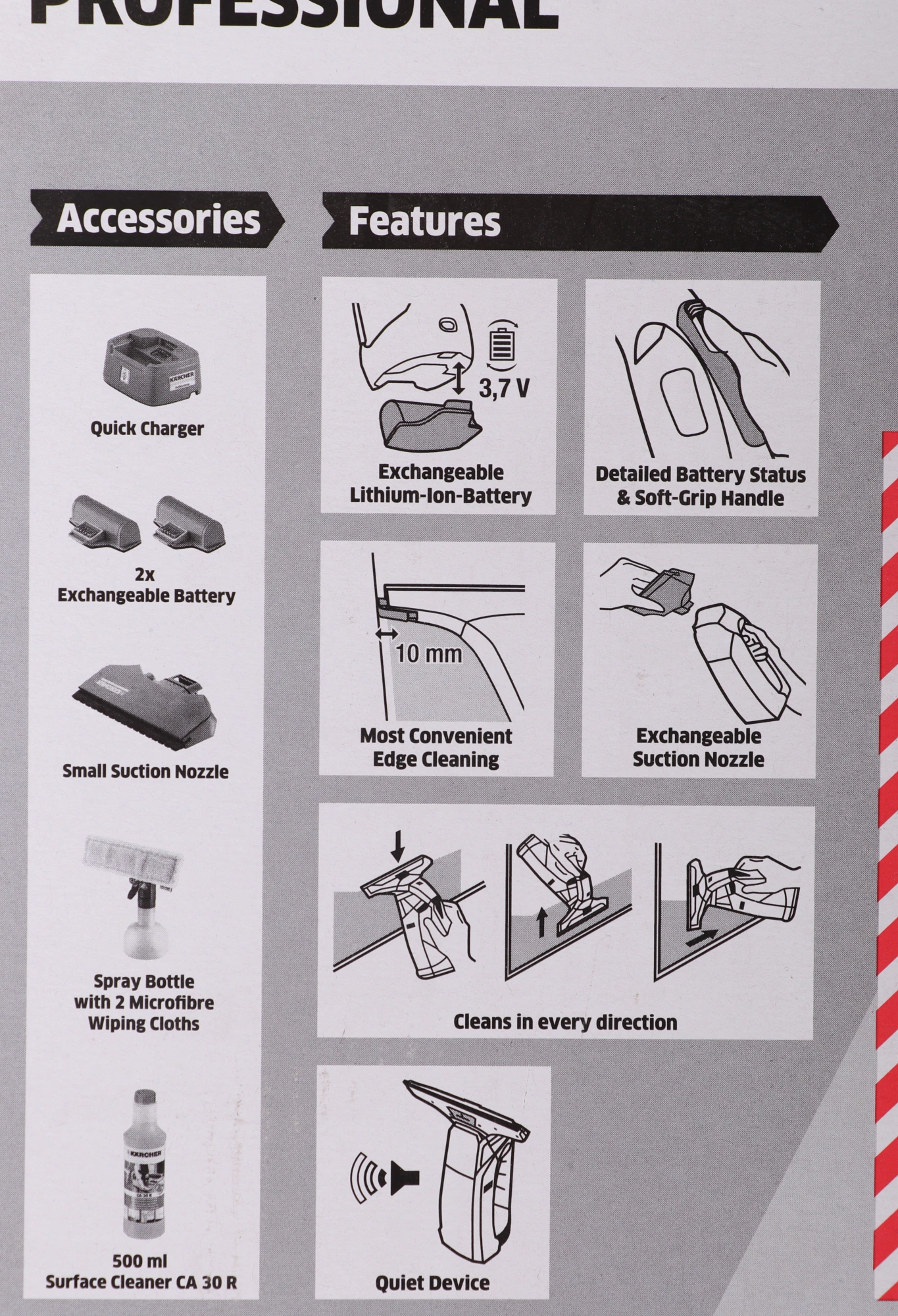 Для всех гладких поверхностей от окон для плитки: Профессиональный аккумуляторный стеклоочиститель WVP 10 обеспечивает превосходные результаты очистки без разводов, комфортно удерживается в руке и позволяет очищать поверхности даже над головой.