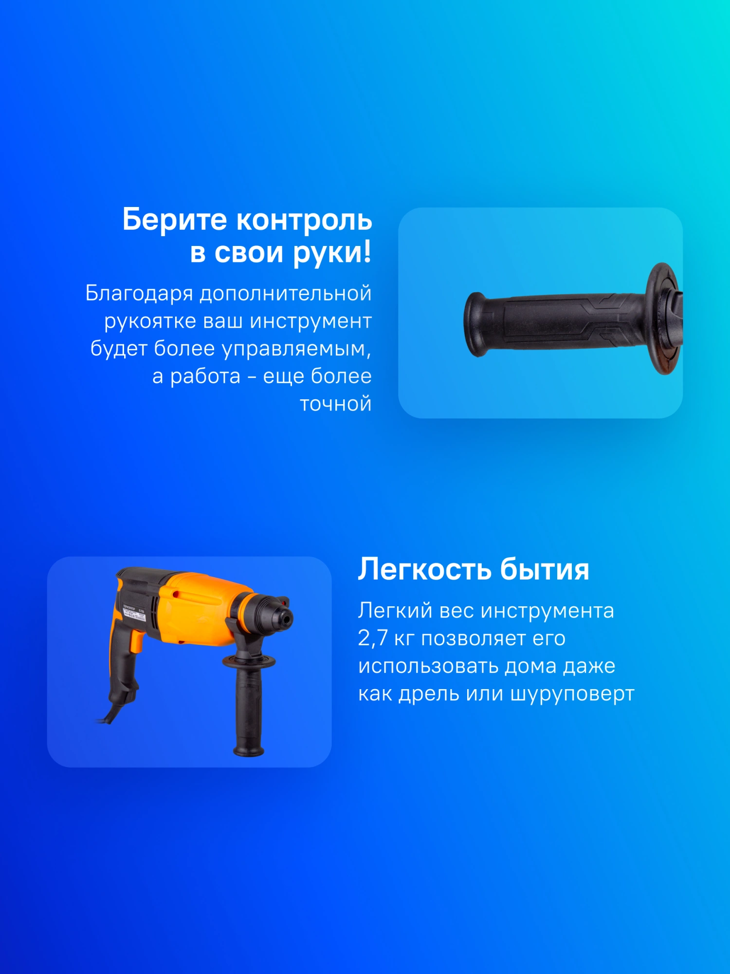дополнительная рукоятка, ограничитель глубины сверления, предохранительная муфта, реверс