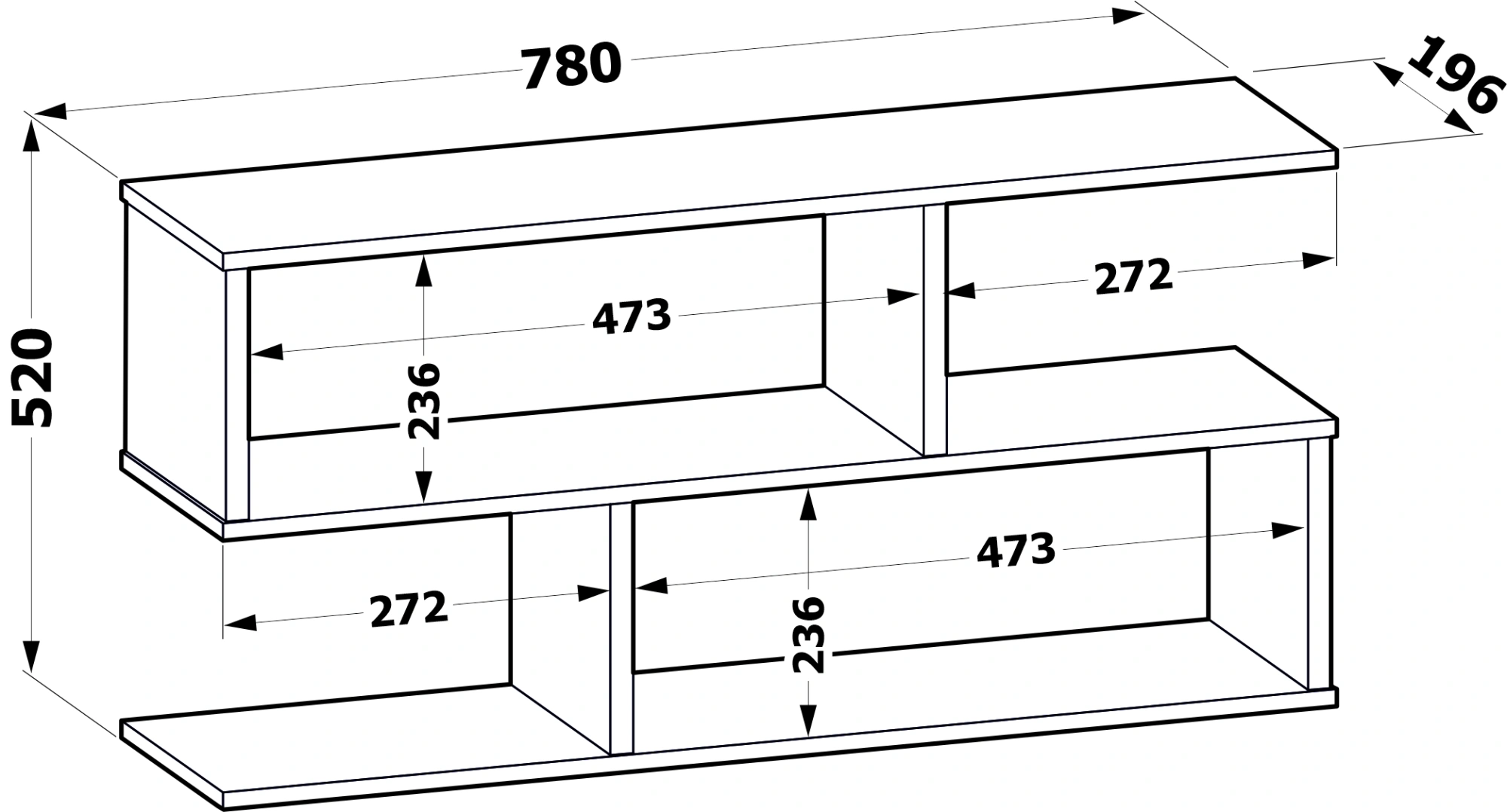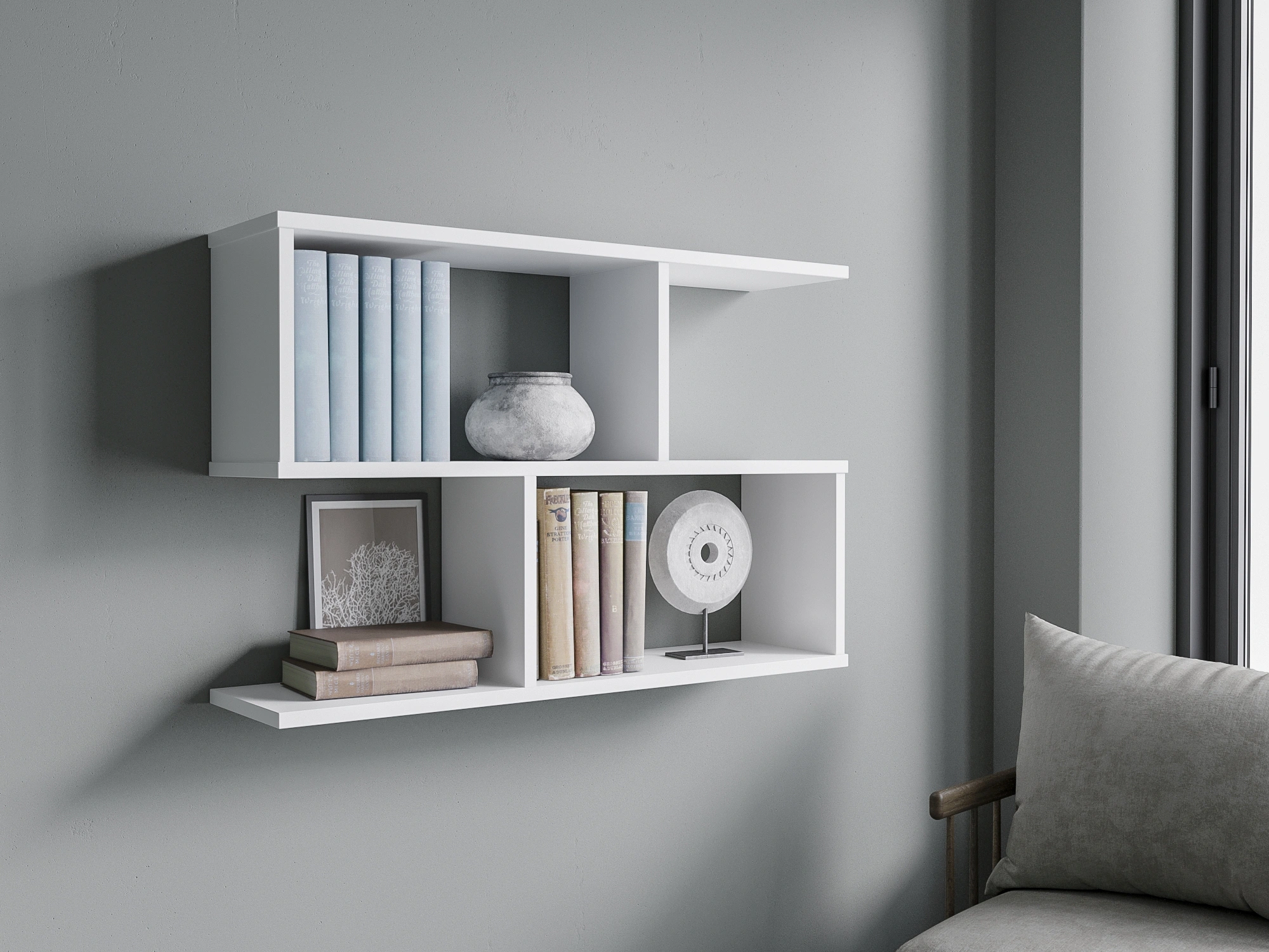 Настенная полка с четырьмя отсеками. Ниши со стенками прекрасно подходят для хранения книг, а открытые делают полку визуально легче. Модель универсальна по сборке, ее можно собрать в любую сторону. Полка рассчитана на нагрузку до 40 кг. ЛДСП толщиной 16 мм. Детали обработаны кромкой ПВХ 0,4 мм.