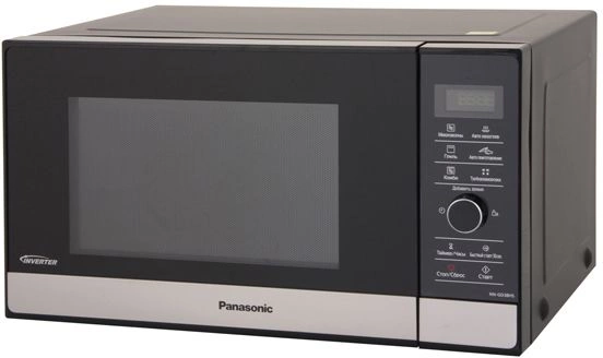 В микроволновой печи Panasonic NN-GD38HSZPE можно готовить и разогревать пищу, а также размораживать полуфабрикаты. Важная особенность этой модели – инверторное управление, позволяющее задействовать комбинацию СВЧ и гриля. Хорошо подходит для выпечки и жарения с образованием хрустящей корочки.