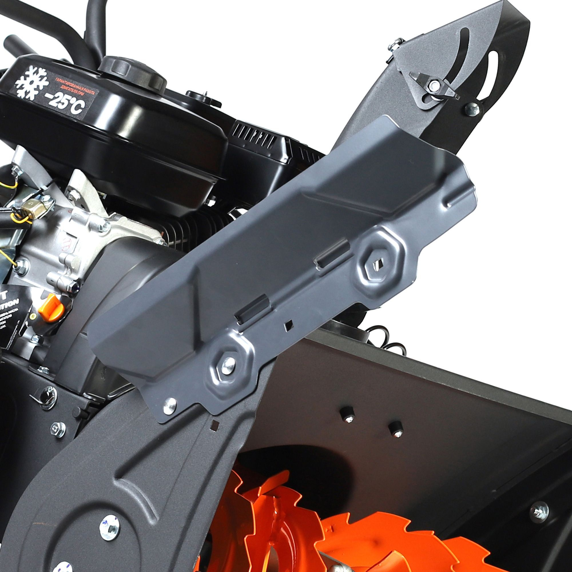 Средний самоходный бензиновый снегоуборщик, имеющий все качества больших агрегатов. В конструкции снегоуборщика используются только подшипники, а не втулки. Шестерня редуктора шнека выполнена из бронзы, что в десятки раз увеличивает ресурс снегоуборщика. Размер колес - 14х5,5-6