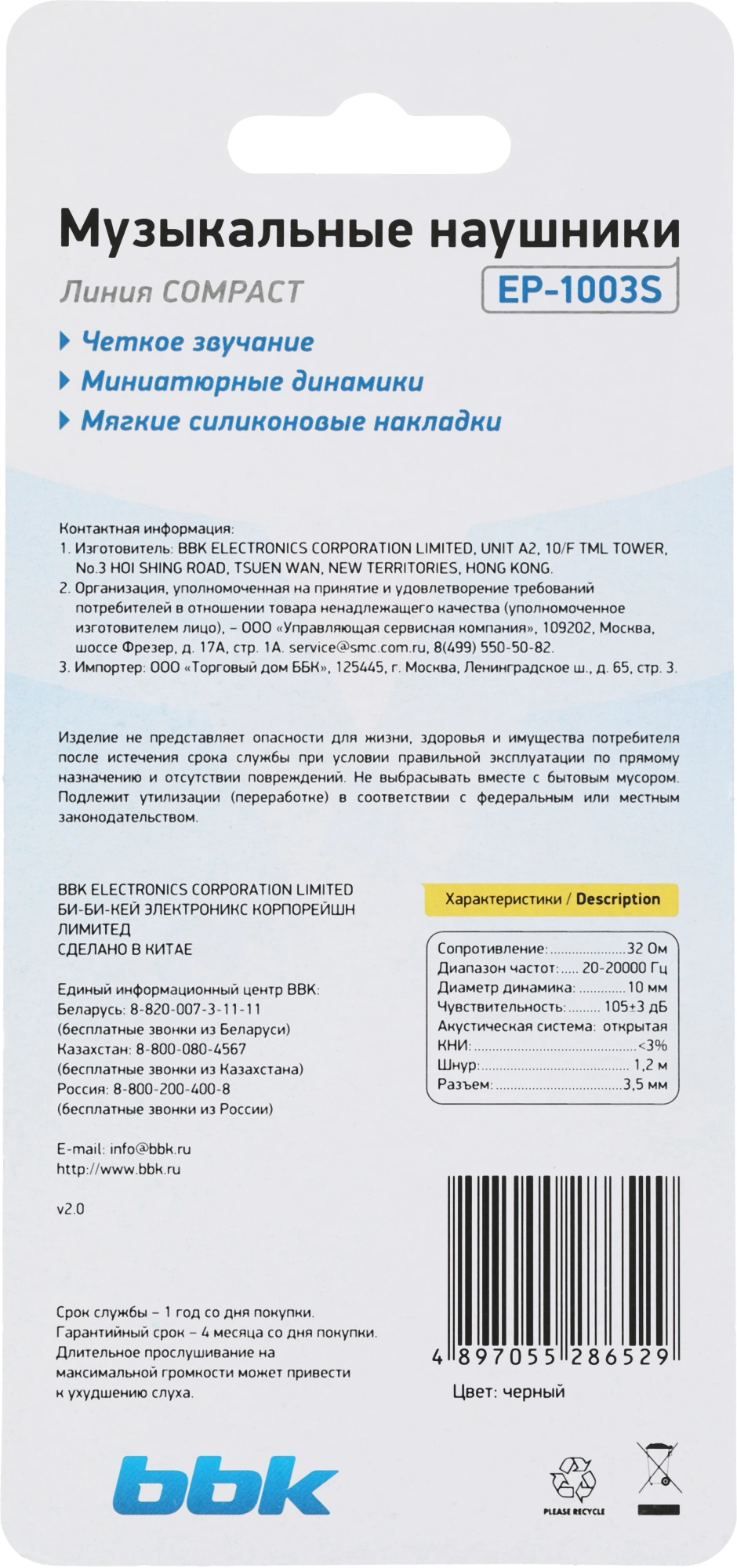 Модель наушников-вкладышей EP-1003S имеет удобные силиконовые накладки, которые обеспечивают высокую изоляцию от внешних шумов. Компактный размер и стильный дизайн не оставят равнодушными любителей музыки.