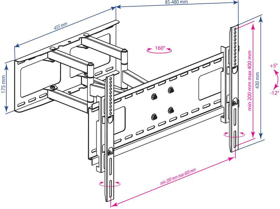 Широкое настенное основание. Легкий монтаж телевизора. Универсальный - телевизор на кронштейне можно наклонить, повернуть и сдвинуть к стене. Мощная стальная конструкция. Идеально подходит для телевизоров с изогнутыми экранами Благодаря запатентованной системе крепления 3D MOUNT.