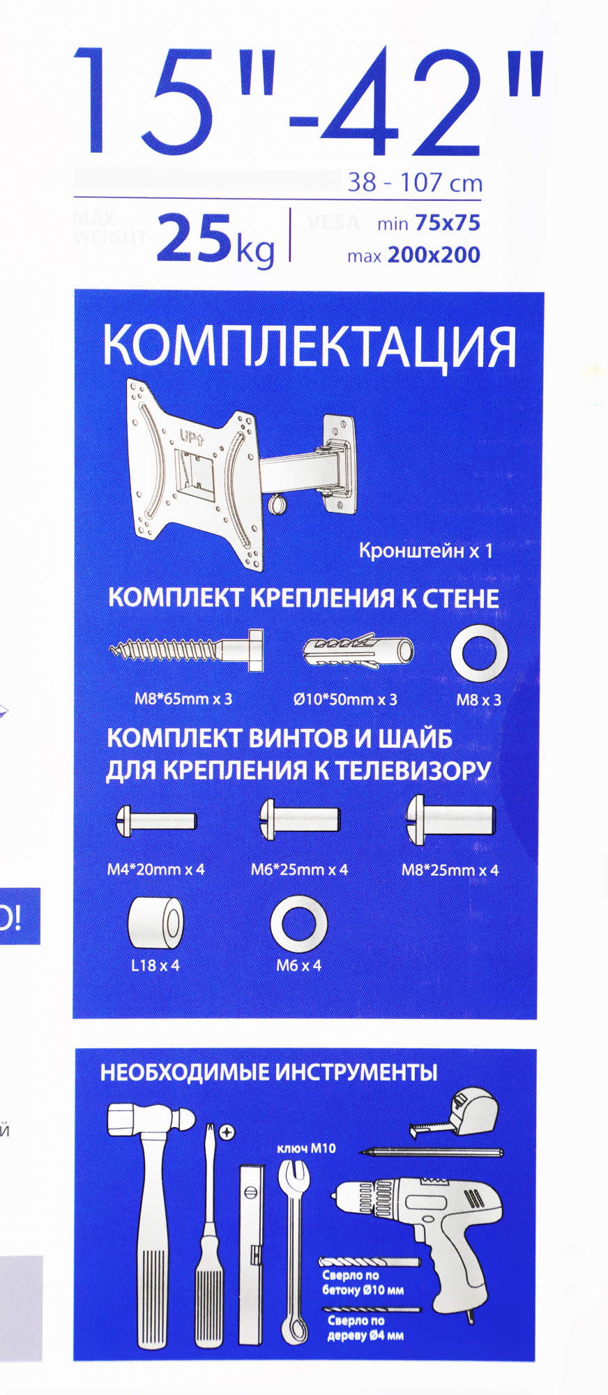черный 15"-42" макс.25кг настенный поворот и накло...