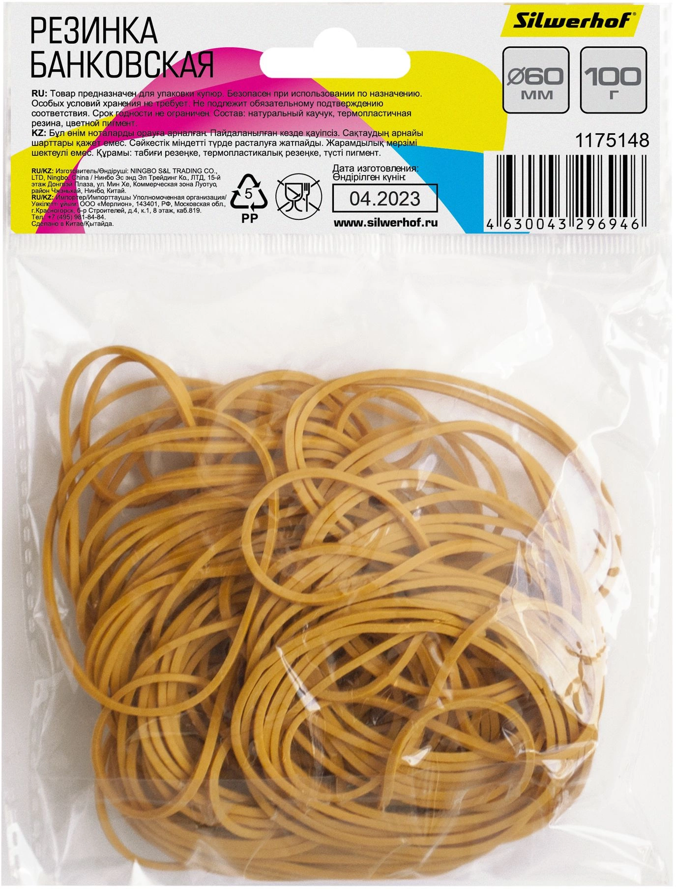 Резинки для купюр Silwerhof 189022 d=60мм 2мм 100гр натуральный