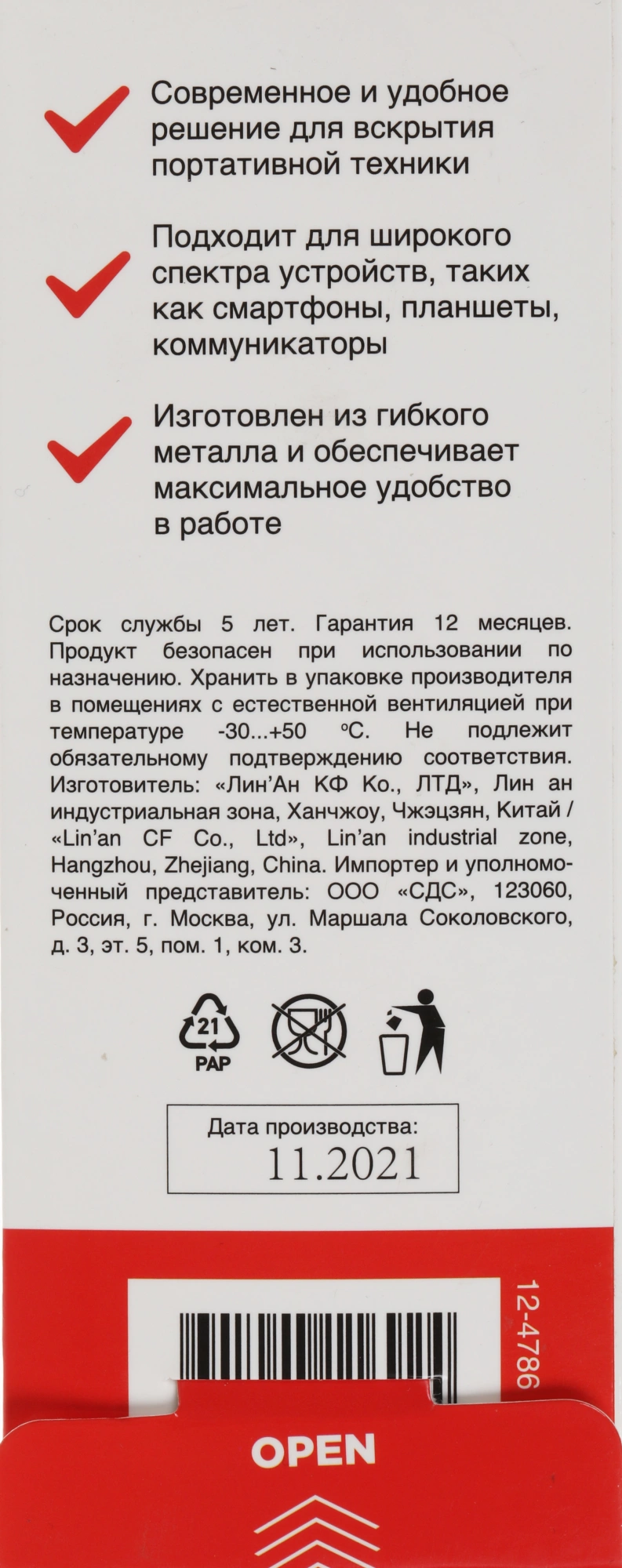Инструмент для вскрытия корпусов смартфона или планшета. Представляет собой два ножа разной формы с обеих сторон инструмента. Нужный нож выбирается в соответствие с особенностями конструкции разбираемого устройства. Инструмент отлично подходит для ремонта iPhone и Android-смартфонов.