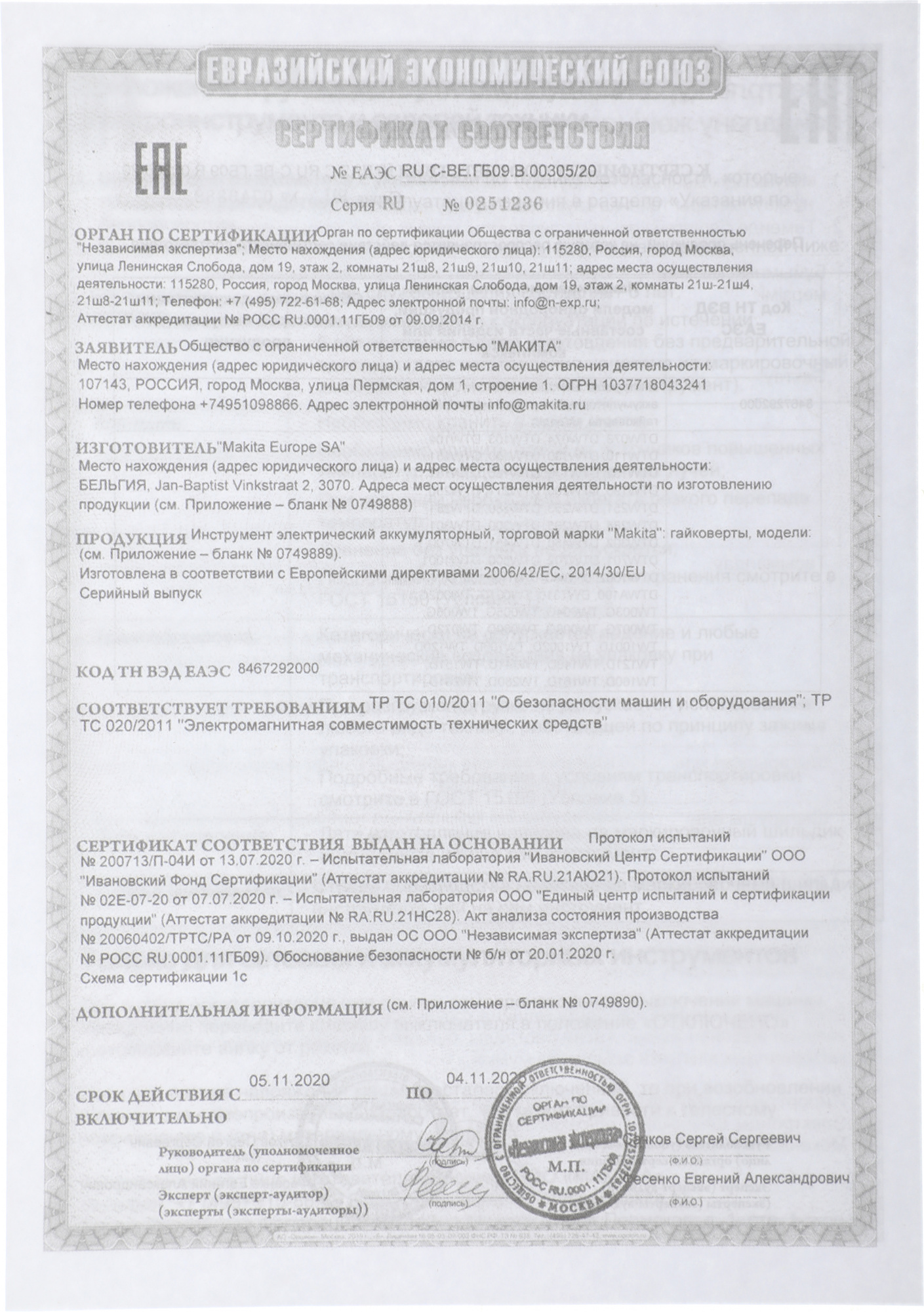 Комплект поставки