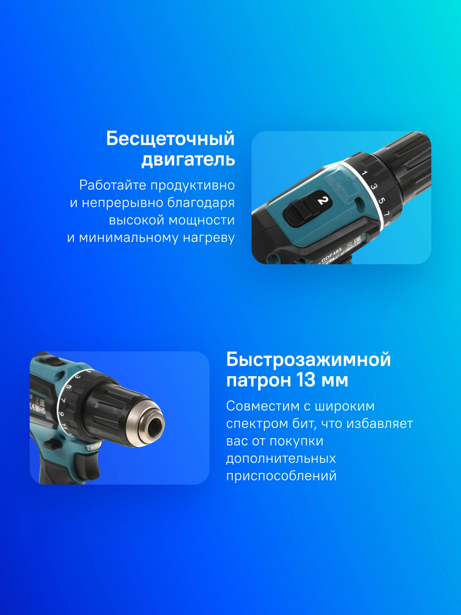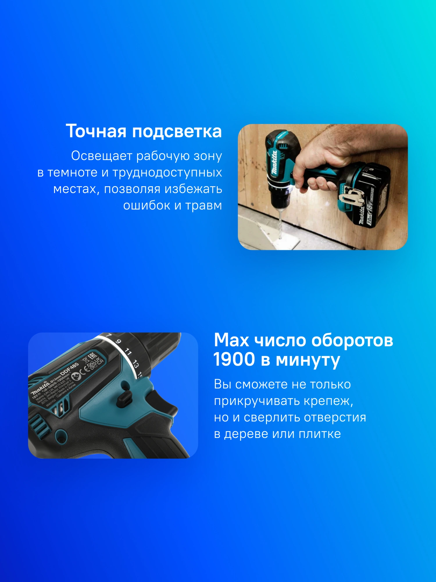 Аккумуляторная дрель-шуруповерт; крючок для подвеса на пояс; коробка.