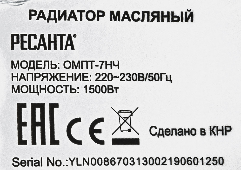 Радиатор масляный Ресанта ОМПТ-7НЧ