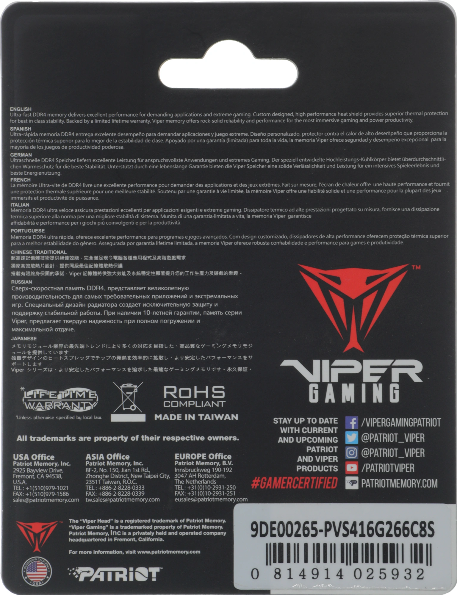 Viper Steel RTL PC4-21300 CL18 SO-DIMM 260-pin 1....