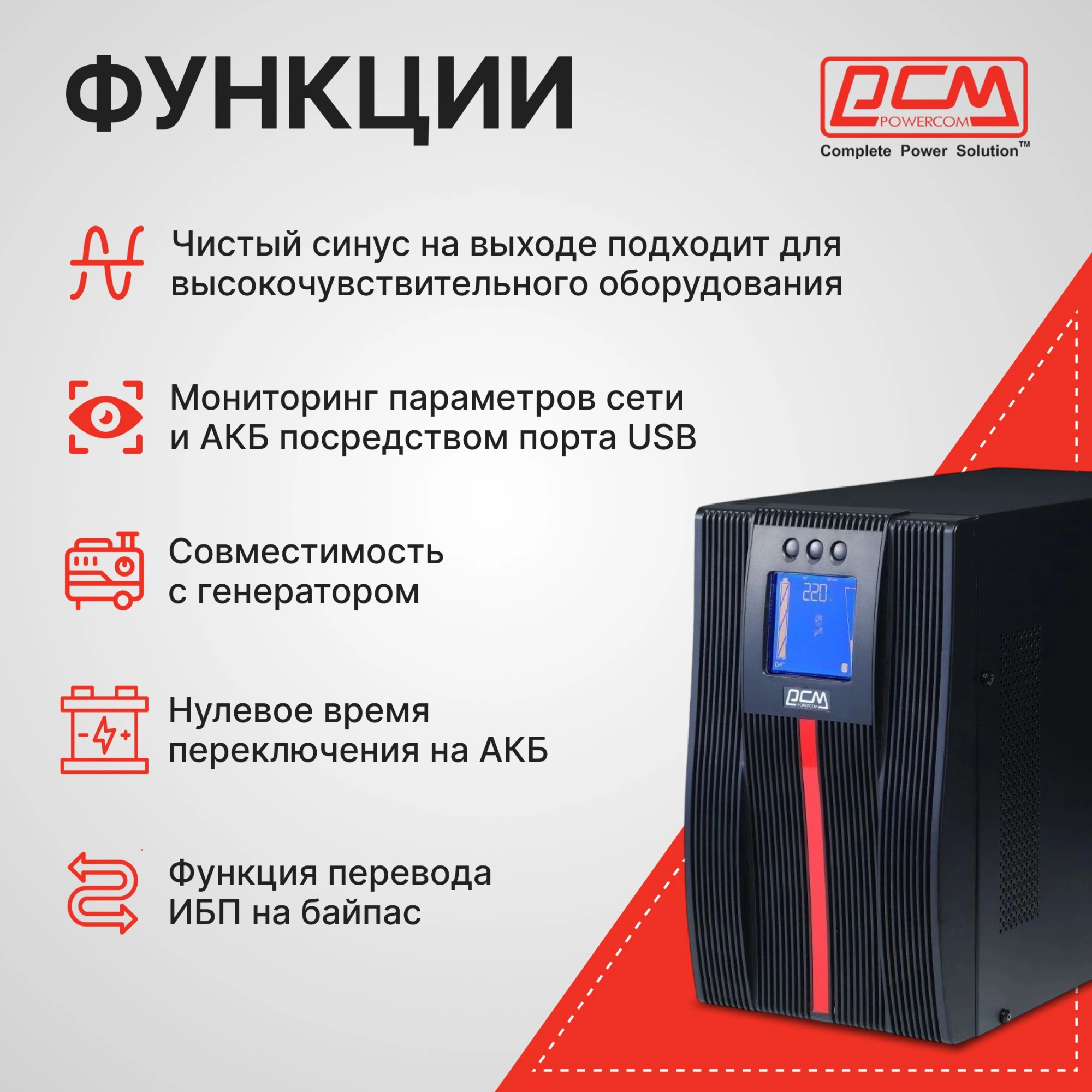Входное / выходное напряжение, частота входного / выходного напряжения; Режимы работы: нормальный, байпас, питание от батарей; уровень заряда батарей; уровень нагрузки;