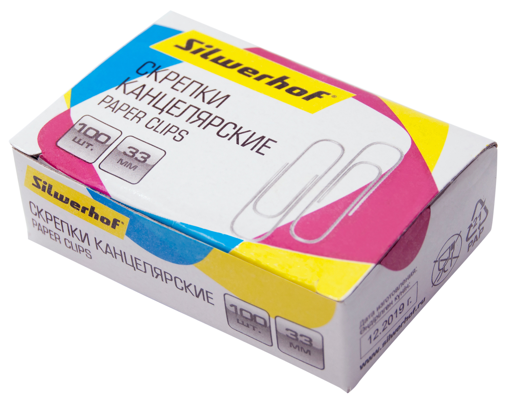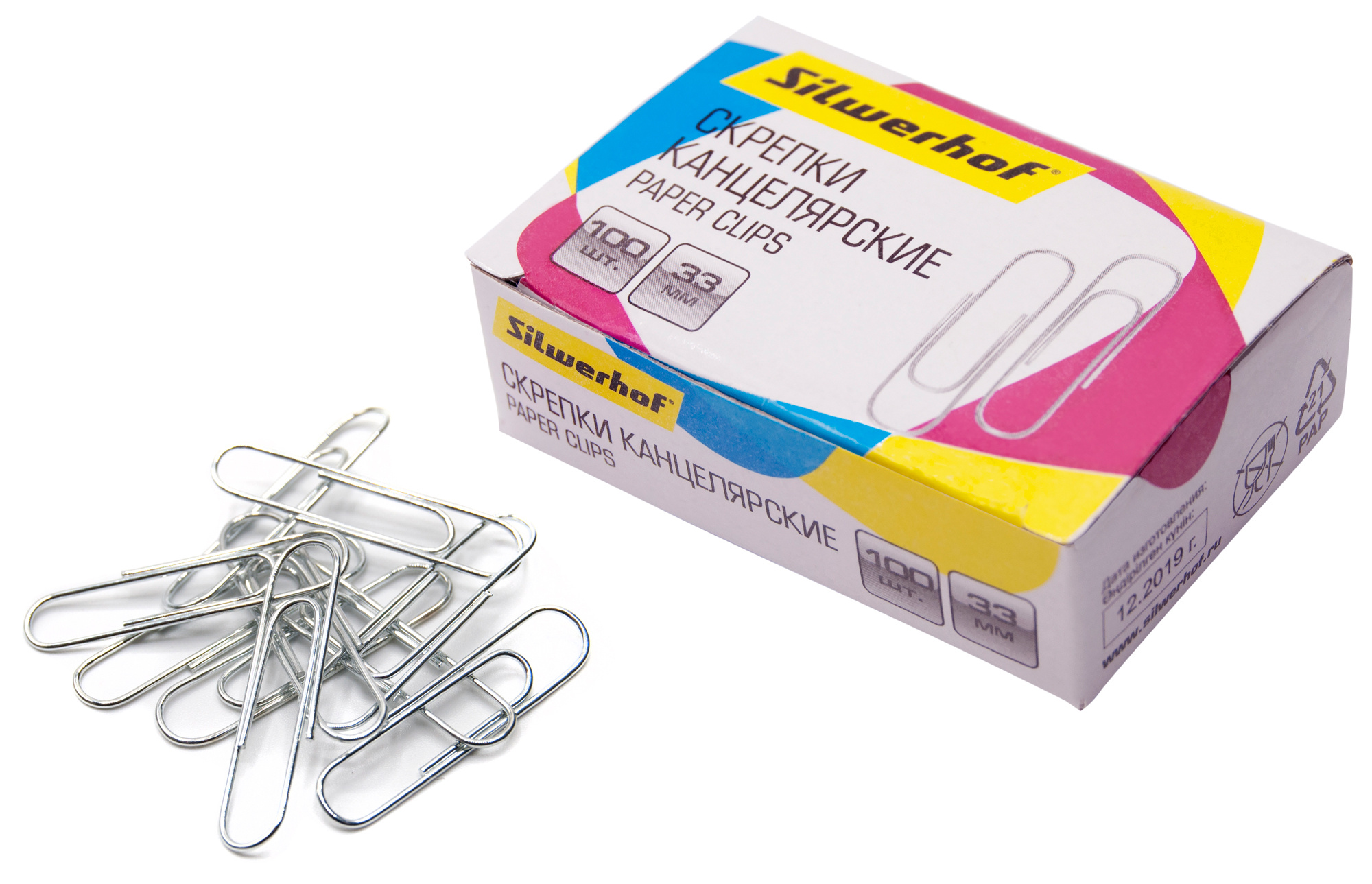 Скрепки Silwerhof 491038 металл оцинкованные 33мм (упак.:100шт) картонная коробка