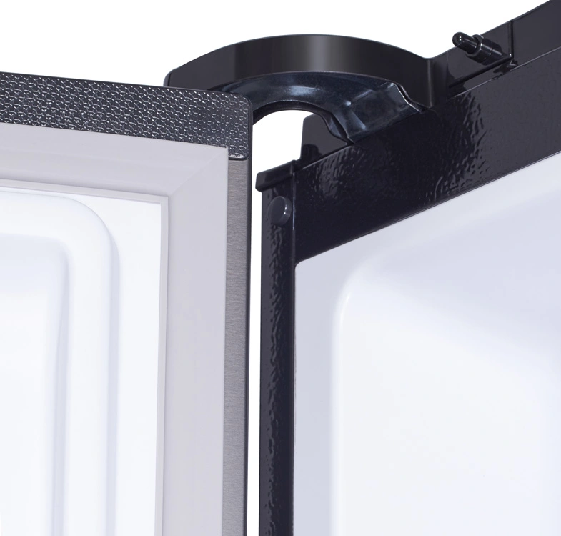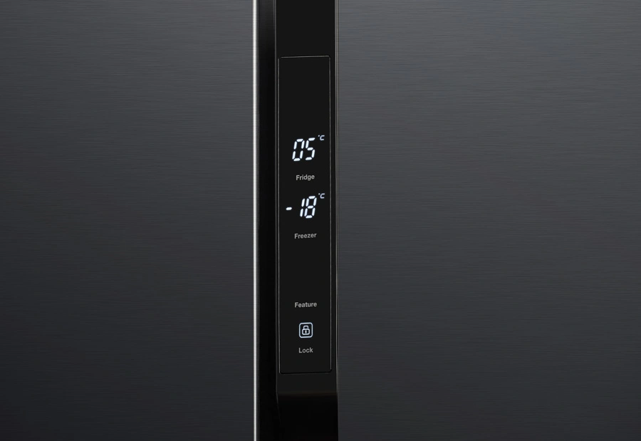 Выбор режимов и установка температуры в холодильной и морозильной камерах осуществляются легким касанием сенсорной кнопки. Для сохранения настроек предусмотрена блокировка панели управления, а для долгой работы холодильника встроен звуковой сигнал - он напомнит о том, что дверцы холодильника или морозильника долгое время не закрыты.