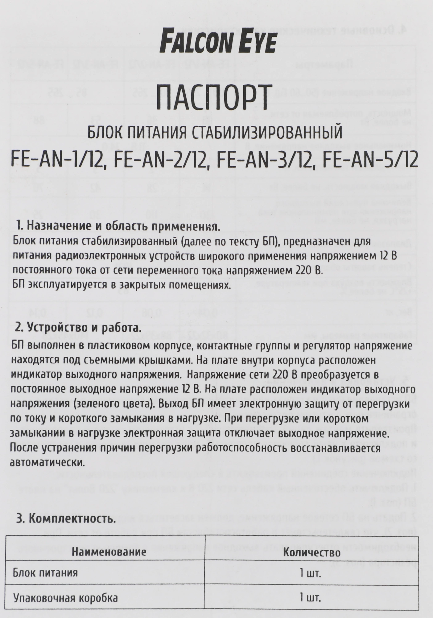 Блок питания Falcon Eye FE-AN-3/12. Входное напряжение 85-265V. Выходное 12V. Номинальный ток 3A
