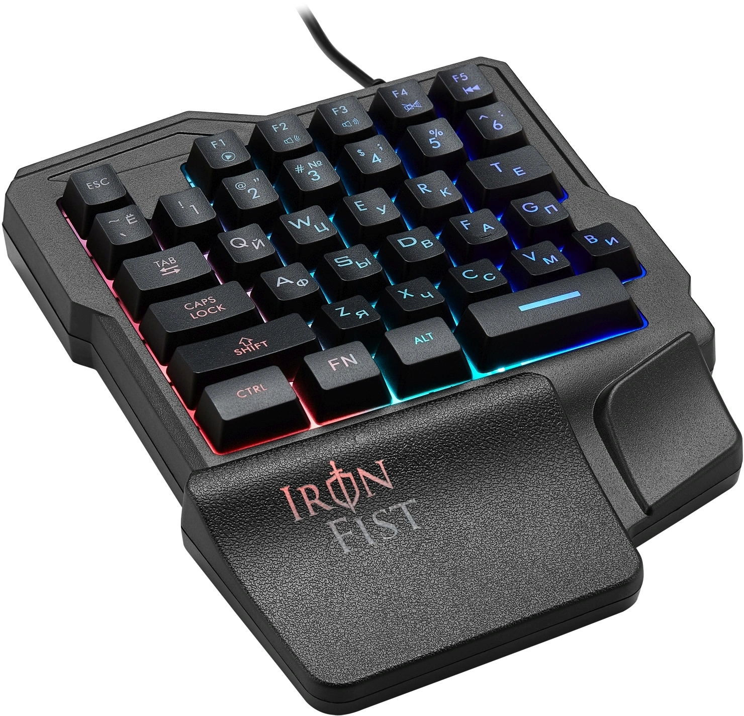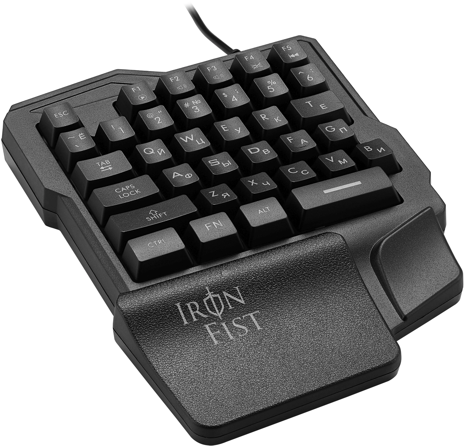 Oklick 701G IRON FIST – компактный игровой блок с эргономичной подставкой под запястья. Он оборудован 35 клавишами с внушительным ресурсом до 10 млн нажатий. Кейкапы изготовлены методом двойного литья. Это обеспечивает им прочность и защищает нанесенные символы от стирания.
