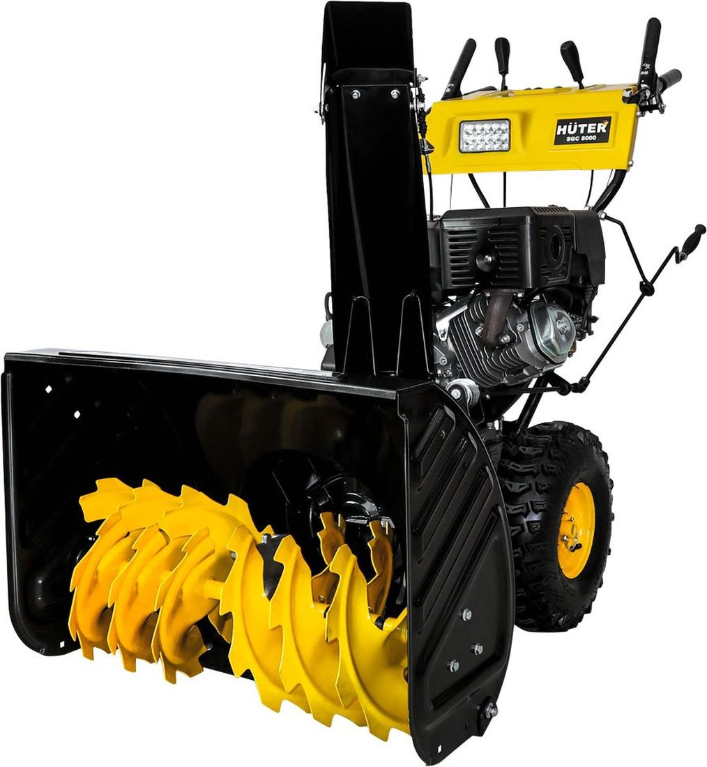Снегоуборщик Huter SGC 8000 предназначен для очистки от снега больших территорий. Полозья на ковше обеспечивают быструю уборку снега без ущерба для машины. Металлический зубчатый шнек может измельчить плотный и тяжелый снег. Подогрев рукояток делает работу более комфортной.
