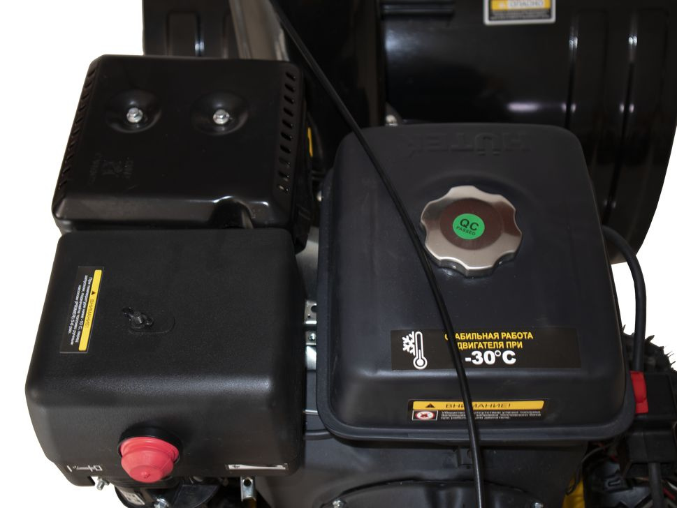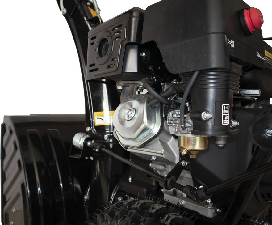 Двигатель адаптирован для работы при низких температурах. Снегоуборщик является самоходным. Регулировка направления выброса снега посредством рукоятки позволяет делать это быстро, практически на ходу. Срезаемые шплинты для защиты рабочих органов. Хромовое покрытие поршневой группы.