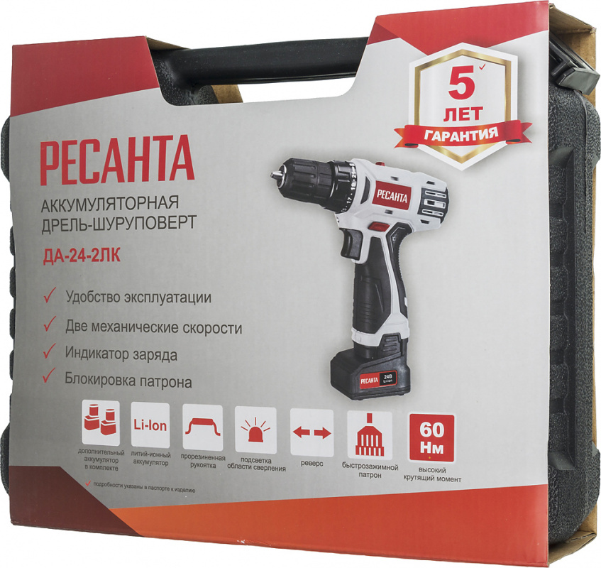 Гарантийный срок составляет 24 мес. со дня продажи. Расширенная гарантия 60 мес. предоставляется только при условии, если владелец зарегистрирует инструмент в течении 1 мес. с момента покупки на сайте компании Ресанта www.resanta.ru