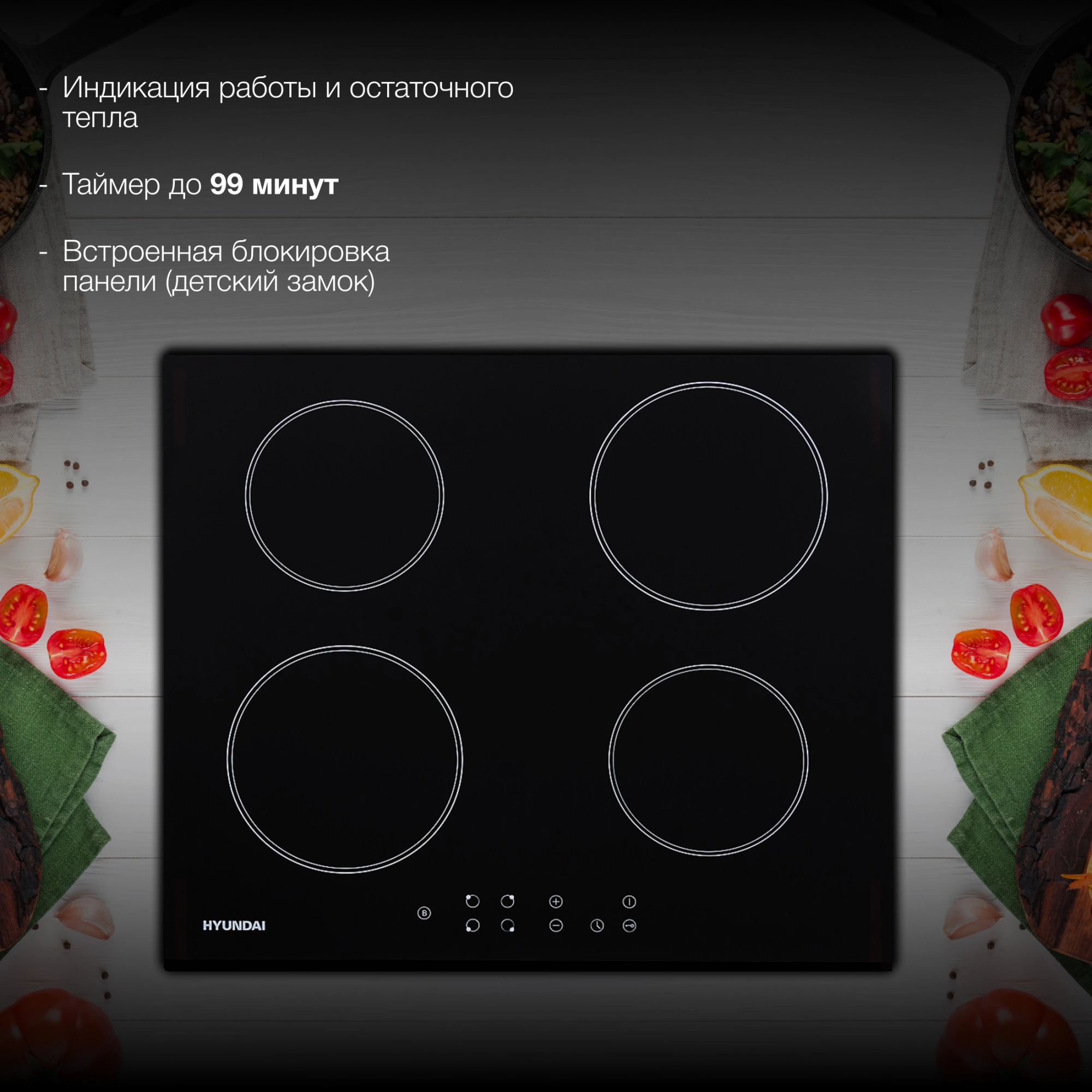 Для безопасной эксплуатации и удобства приготовления блюд в варочной поверхности HYUNDAI HHI 6740 BG встроено несколько smart опций:
