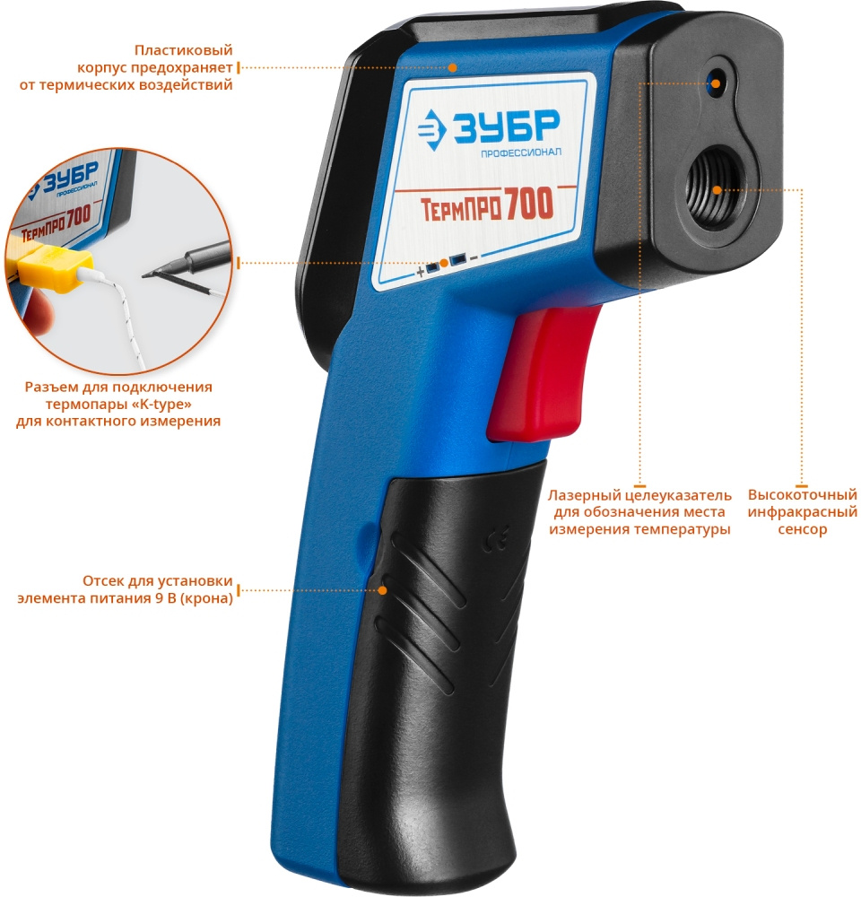 Инфракрасные пирометры ЗУБР обеспечивают бесконтактное измерение температуры с высокой точностью. Большое оптическое разрешение позволяет производить измерения на удалении. Корпус пистолетной формы с удобным курком и наведением точечного целеуказателя на объект.