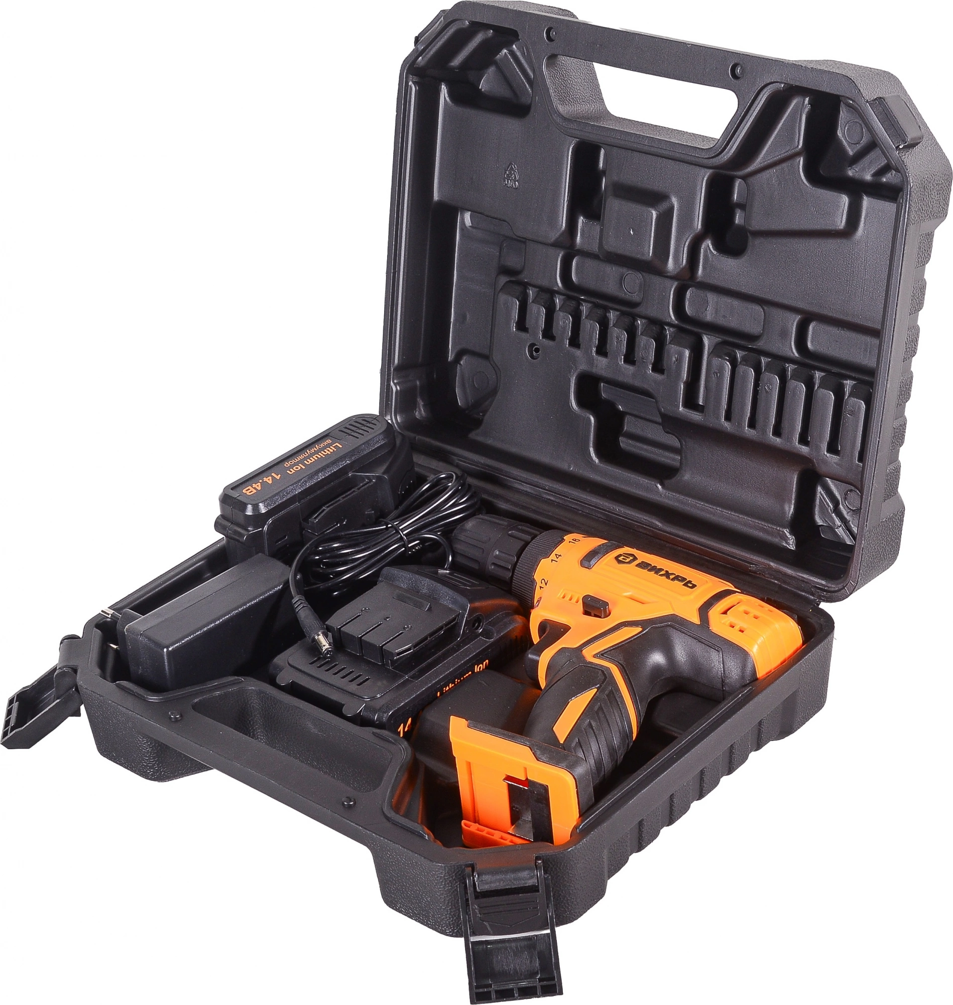 Аккумуляторная дрель-шуруповерт с аккумулятором; дополнительный аккумулятор; зарядное устройство; паспорт (инструкция); кейс.