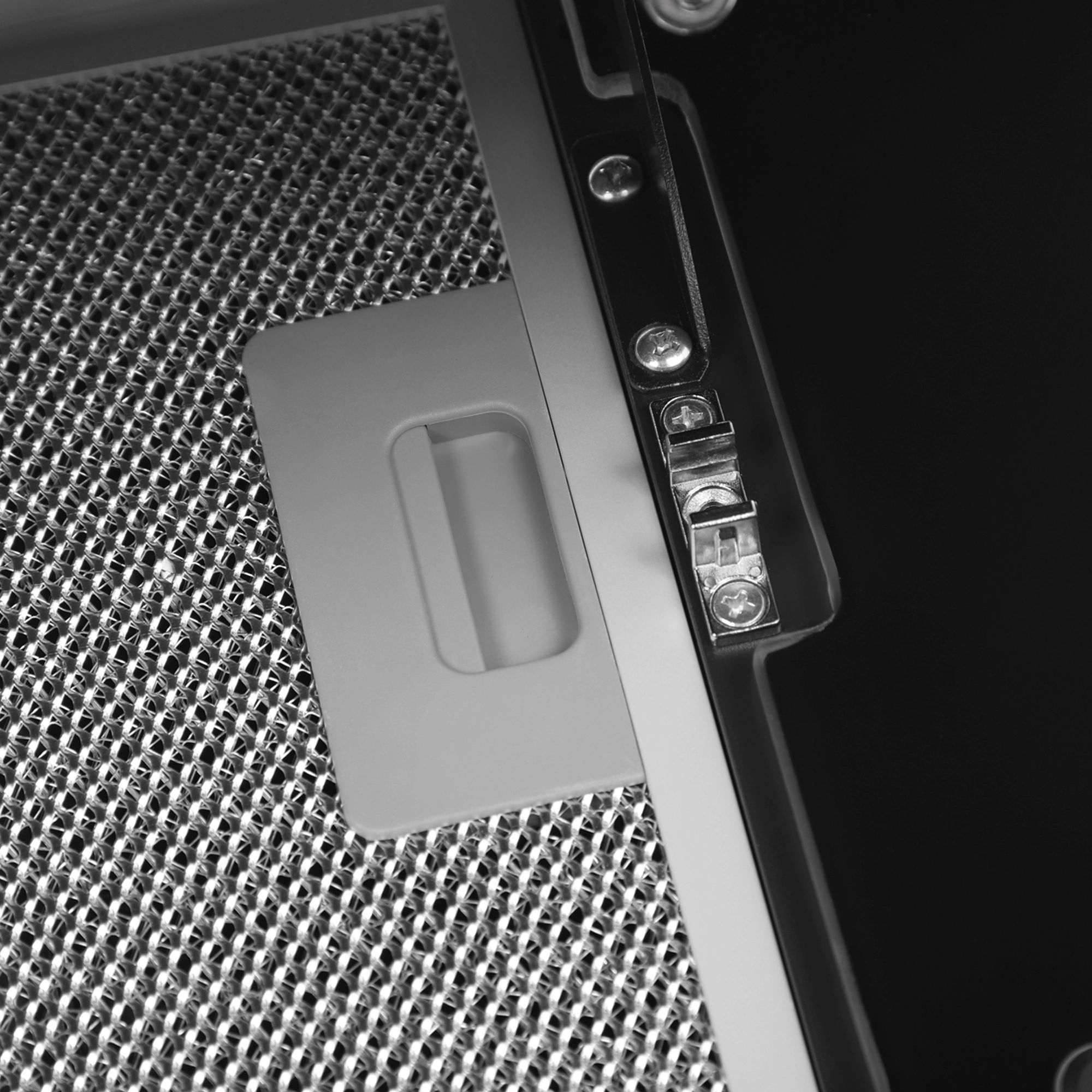 Два режима работы. Устройство поддерживает работу в двух режимах: отвод воздуха и рециркуляция. Подключите прибор к вентиляционной решетке, чтобы воздух самостоятельно выводился из кухни за счет тяги в вентиляционном канале либо за счет работы вентилятора. В режиме рециркуляции воздух проходит два этапа очистки и возвращается обратно в помещение. Для работы в режиме рециркуляции потребуется приобрести специальные угольные фильтры.