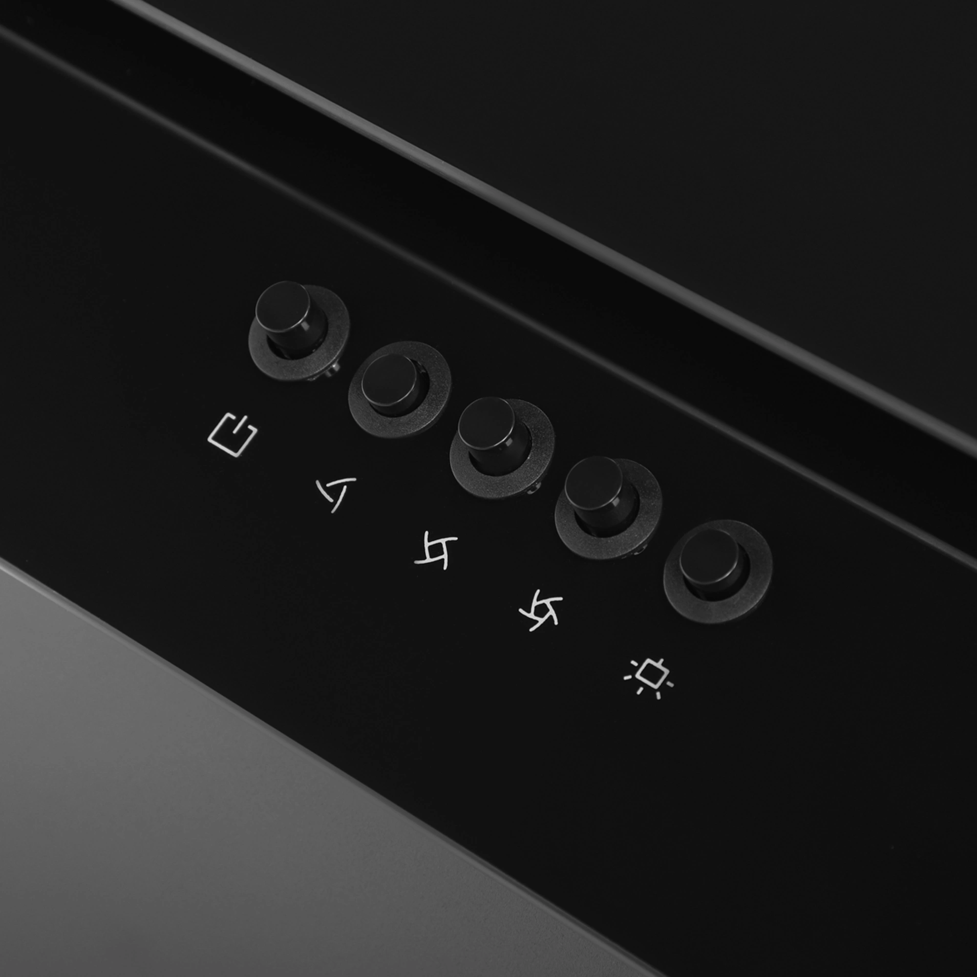 Современный и эргономичный дизайн. Корпус вытяжки шириной 60 см изготовлен из качественных износостойких материалов – стекла и металла. Жироулавливающий фильтр скрыт за декоративной панелью. Устройство выполнено в черной расцветке и впечатляет элегантным внешним видом. Благодаря наклонной конструкции вытяжка не мешает при готовке: можно наклоняться над плитой без риска ушибиться.