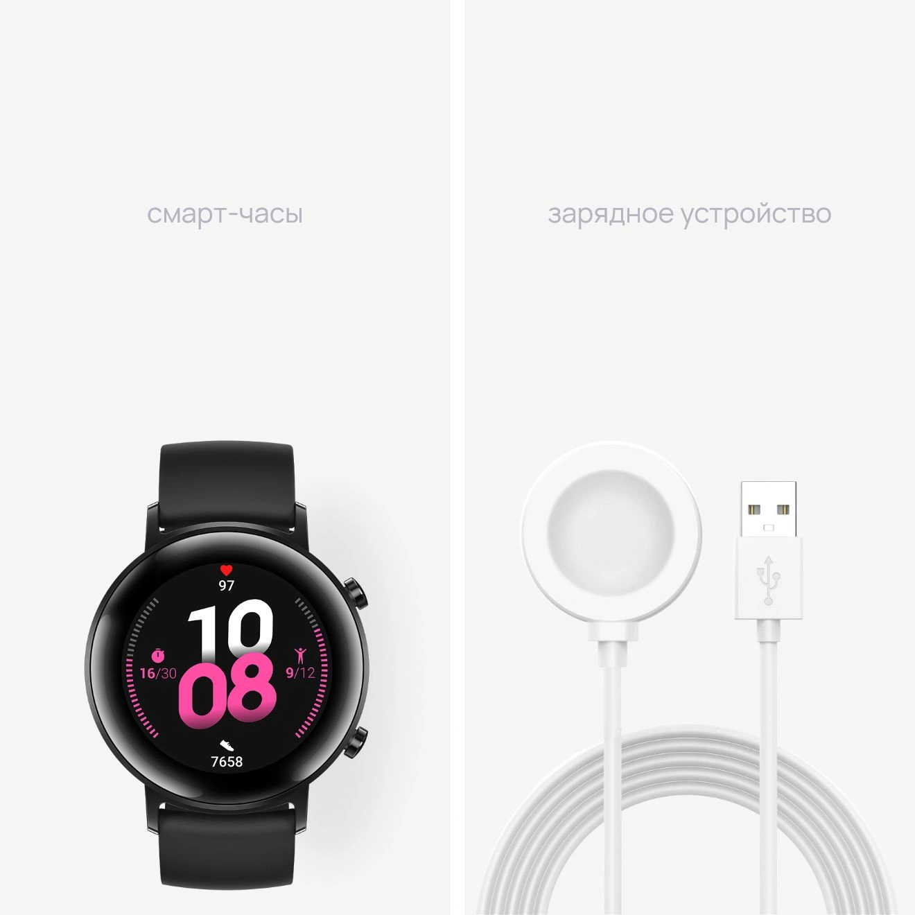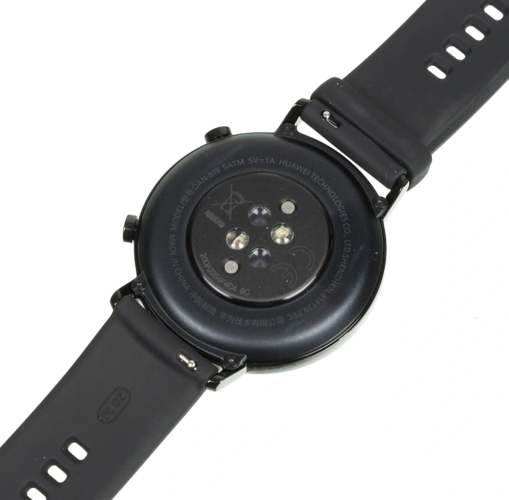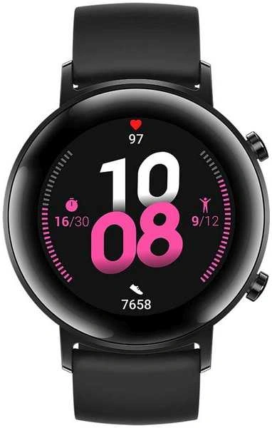 Уультратонкие 42-мм профессиональные часы для занятий спортом от компании Huawei. Они оснащены энергоемкой батарей, которая способна работать до недели без подзарядки. Смарт-часы выполняют мониторинг тренировок, пульса, мониторинг сна, поддерживают GPS и уведомления о сообщениях.
