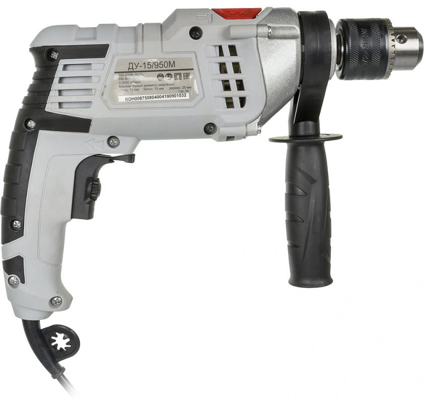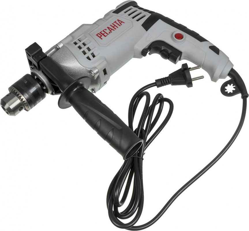 Ударная дрель; Ключ для патрона; Ограничитель глубины сверления; Боковая рукоятка; Паспорт (инструкция)