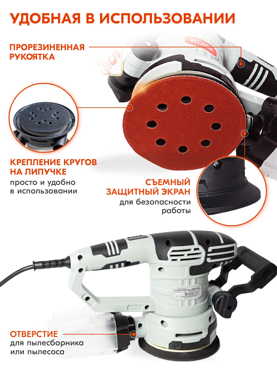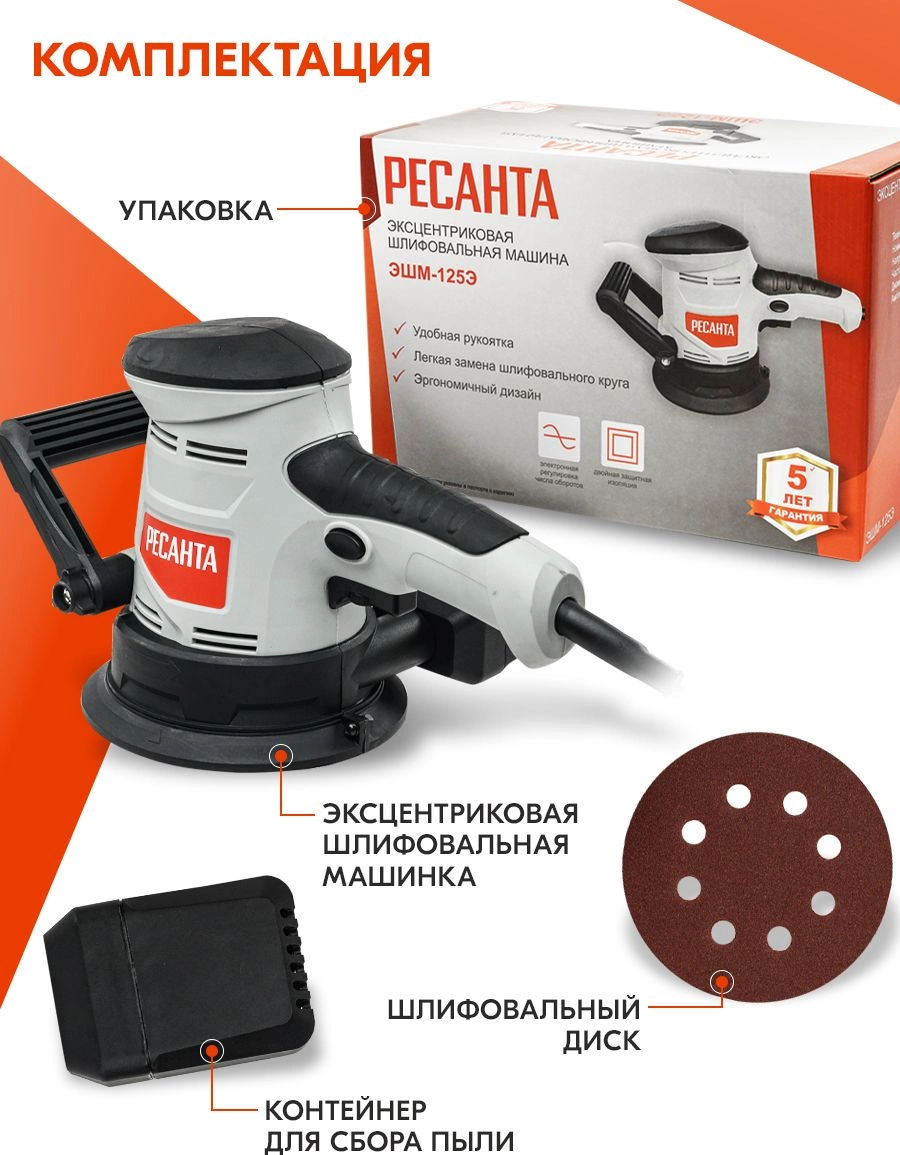 Эксцентриковая шлифовальная машина; Шлифовальный круг; Пылесборная коробка; Паспорт (инструкция)