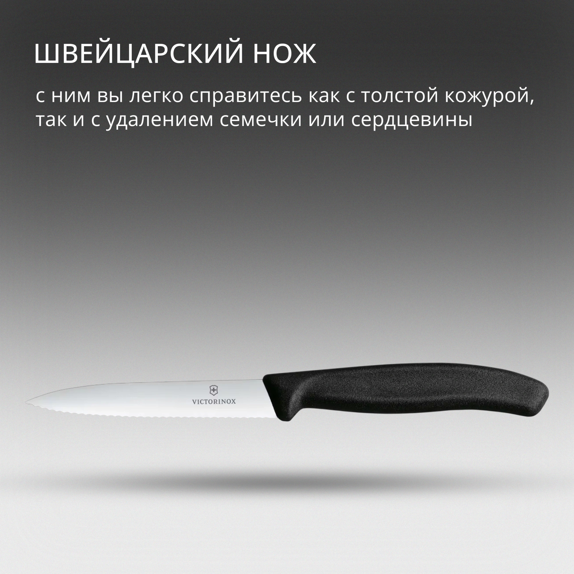 Нож Swiss Classic Paring Knife всегда будет выделяться среди остальных ножей в вашем ящике стола благодаря своей ультраострой волнистой кромке и заостренному кончику. Вместе они позволят вам справиться с толстой кожурой, а удаление семечек и сердцевины никогда не было таким простым. Это именно то, что вам нужно, чтобы превратить груду овощей в красивое и питательное блюдо.