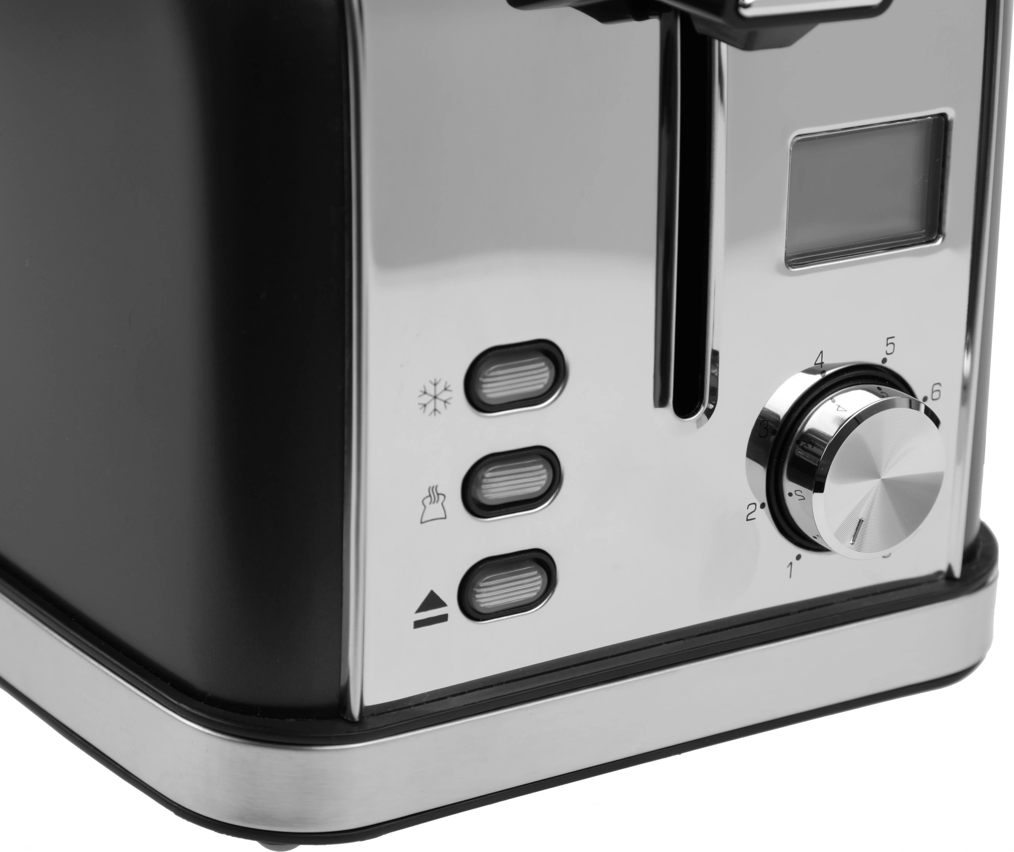 Создан для тех, кто любит полакомиться ароматным и хрустящим горячим поджаренным хлебом. Оснащен поворотным регулятором степени обжаривания, тремя кнопками со световыми индикаторами и жидкокристаллическим дисплеем.