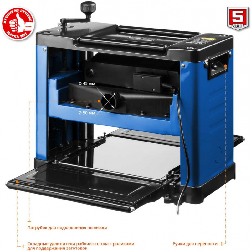 Компактный переносной станок предназначен для одностороннего строгания заготовок из древесины в заданный размер по толщине. Удобен и прост в работе. Мощный двигатель с защитой от перегрузки и удлинители рабочего стола позволяют выполнить работу не только быстро, но и точно.