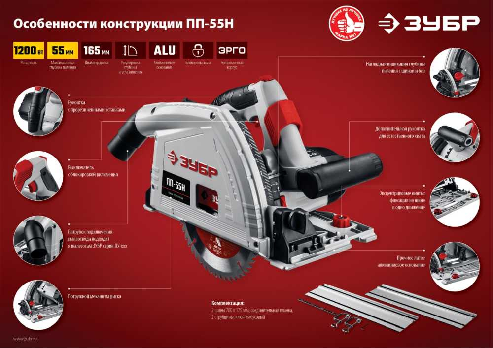 Изделие для работ, требущих повышенной точности распила. Имеет все востребованные функции и регулировки. Основание позволяет использовать комплектную направляющую шину, что делает качественное пиление простым