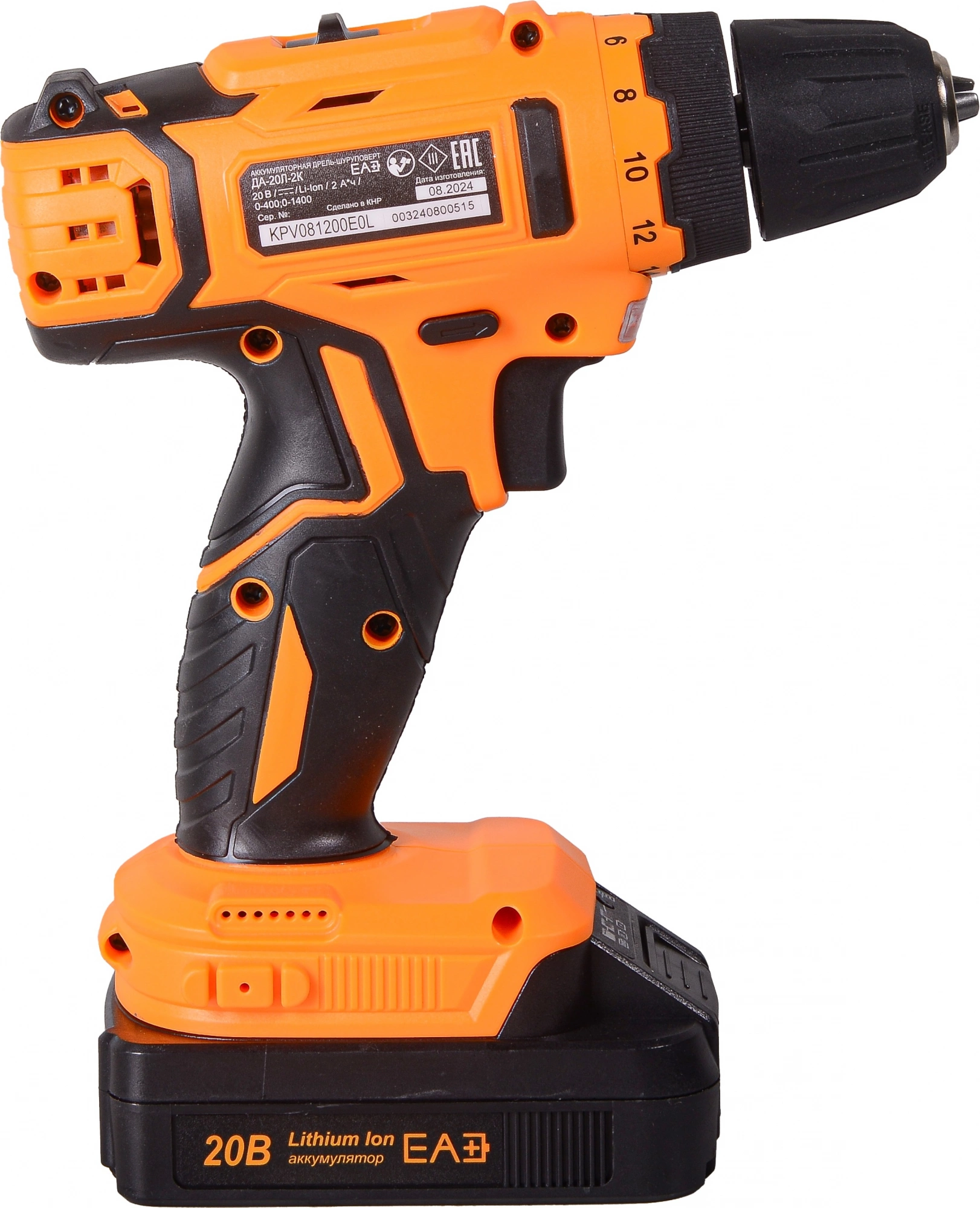 Время зарядки аккумулятора составляет всего 1 час. Напряжение аккумулятора 20В. Емкость аккумулятора 2Ач позволяет выполнять большой объем работы. Легкий вес и компактный размер, как у младших моделей. Большой крутящий момент Нм, что позволяет выполнять большой объем работ