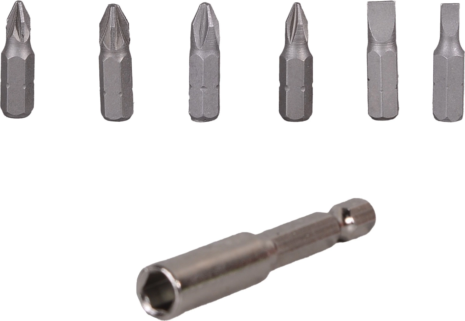 Дрель-шуруповерт с аккумулятором; Бита-6шт; Адаптер-удлинитель для бит; Адаптер питания