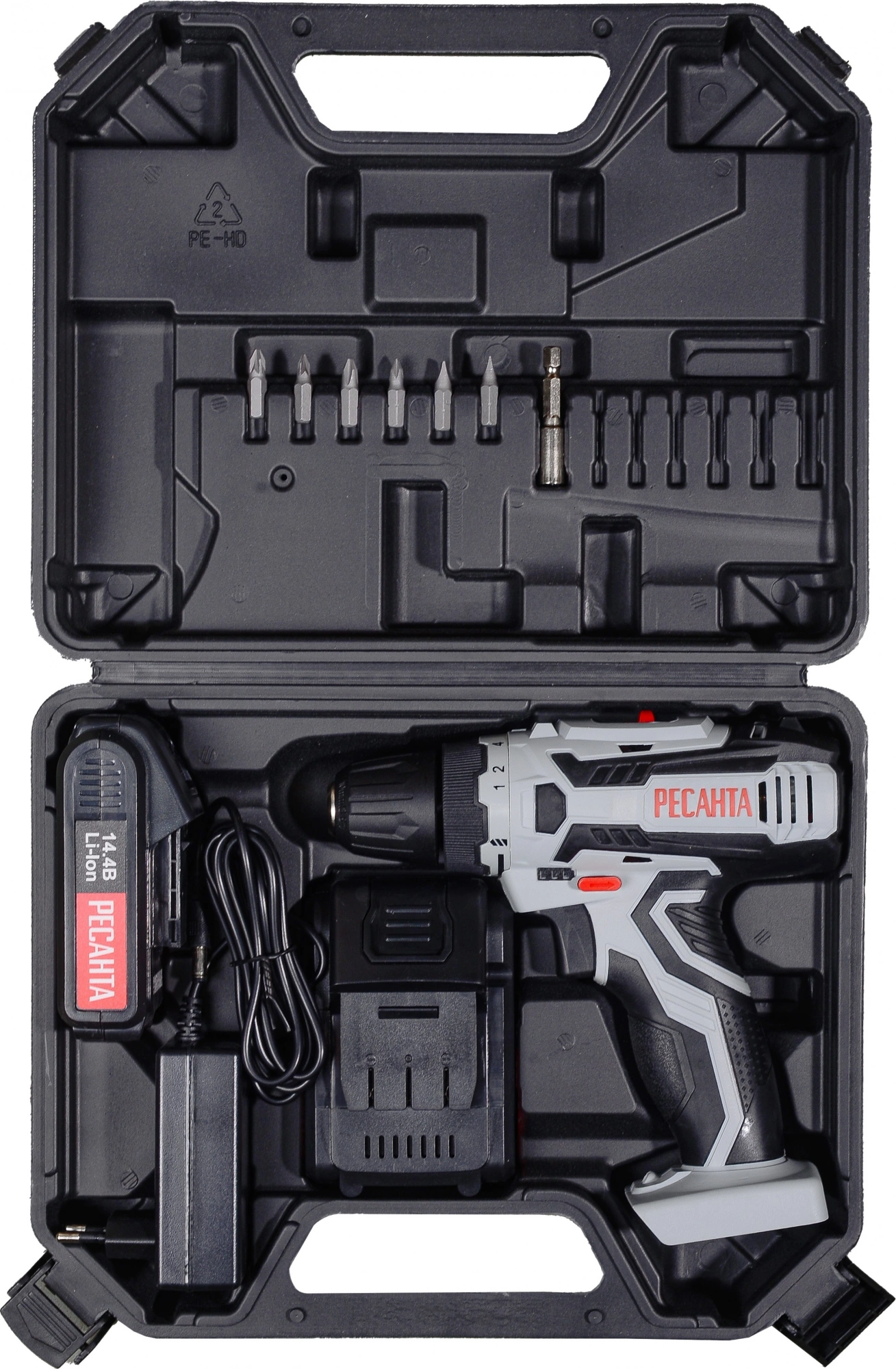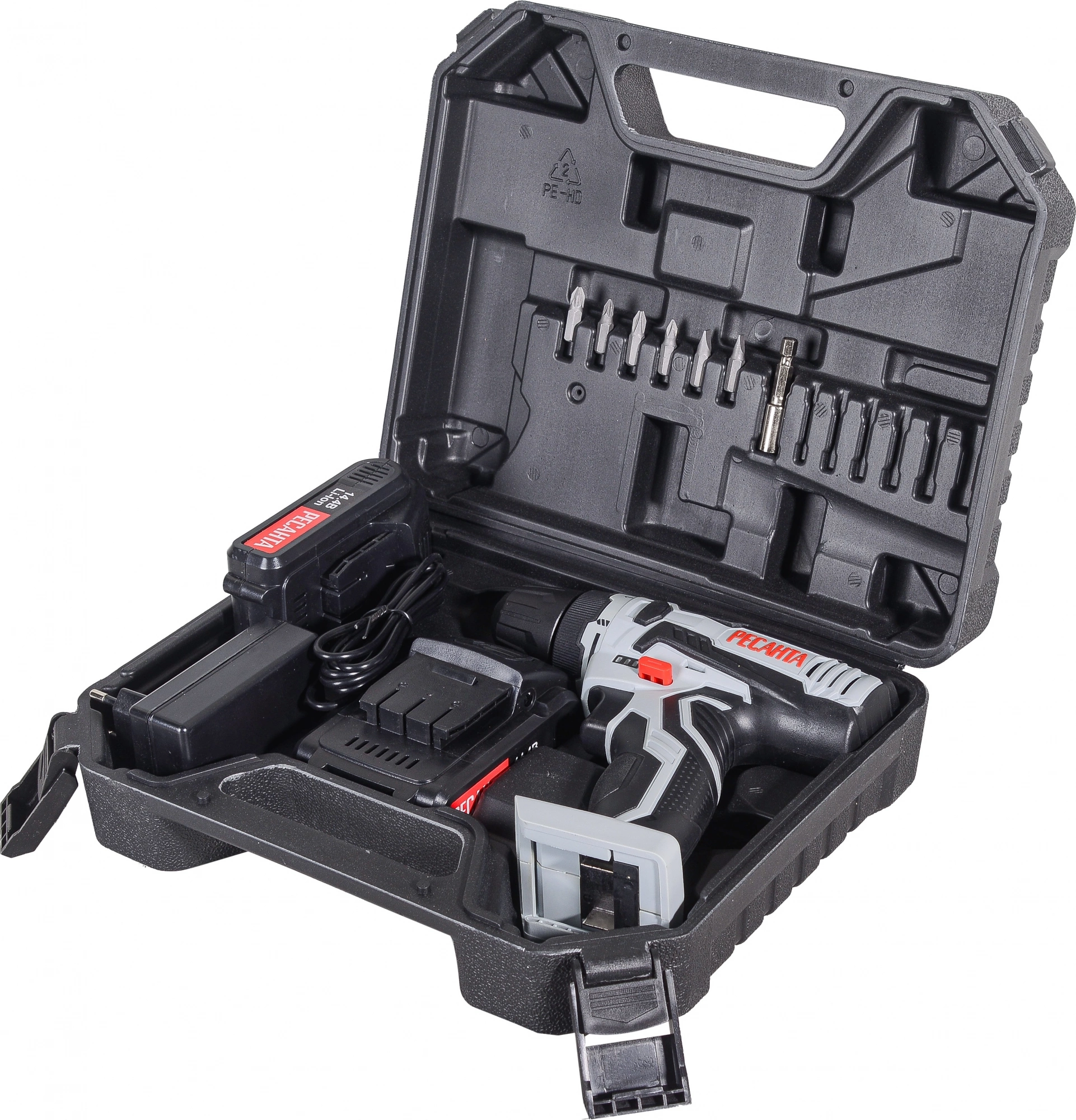 Дрель-шуруповерт с аккумулятором; Дополнительный аккумулятор; Бита-6шт; Адаптер-удлинитель для бит; Адаптер питания