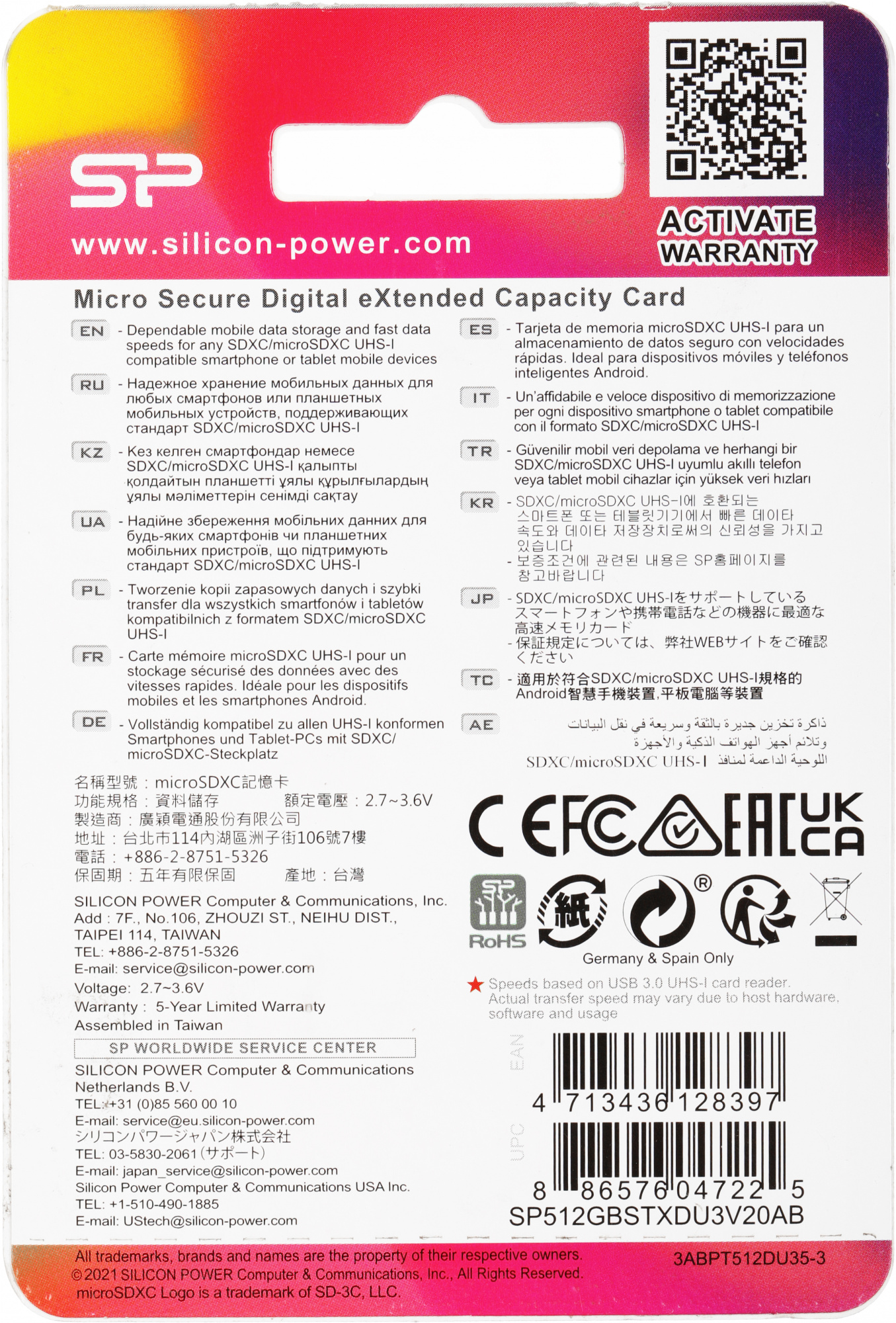 Флеш карта microSDXC 512GB Silicon Power SP512GBSTXDU3V20AB