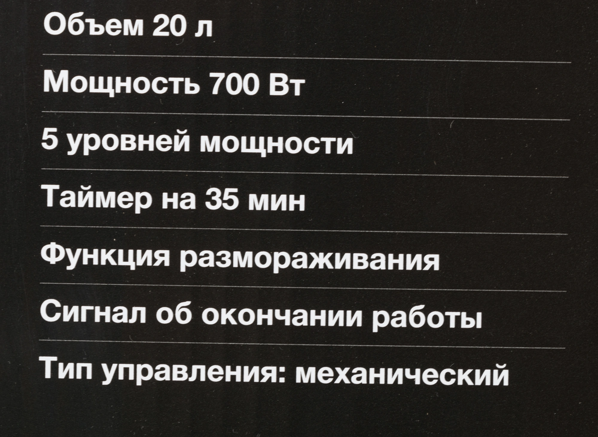 СВЧ Hyundai HYM-M2058 отличается стильным современным дизайном. Выполнена в черном цвете, исключение составляют белая маркировка и логотип. Набор функций является оптимальным для такого прибора. Доступны размораживание, в том числе в автоматическом режиме, и подогрев уже готовой еды. Управление отличается простотой. Достаточно установить уровень мощности и время, дальше устройство включится само. После окончания процесса прозвучит мягкий звуковой сигнал. Открыть дверцу можно при помощи удобной ручки, приложив небольшое усилие. Прибор устанавливается на столешницу, при этом надо следить, чтобы были свободными вентиляционные отверстия для доступа воздуха. За внутренней поверхностью очень легко ухаживать благодаря абсолютно гладкому эмалированному покрытию. С него без особого труда убираются любые загрязнения.