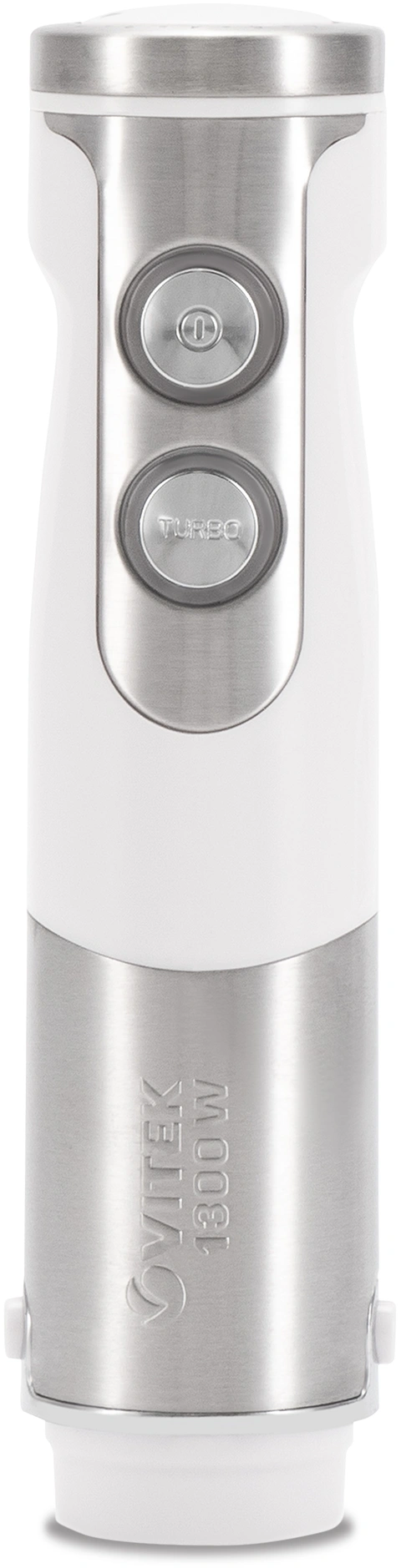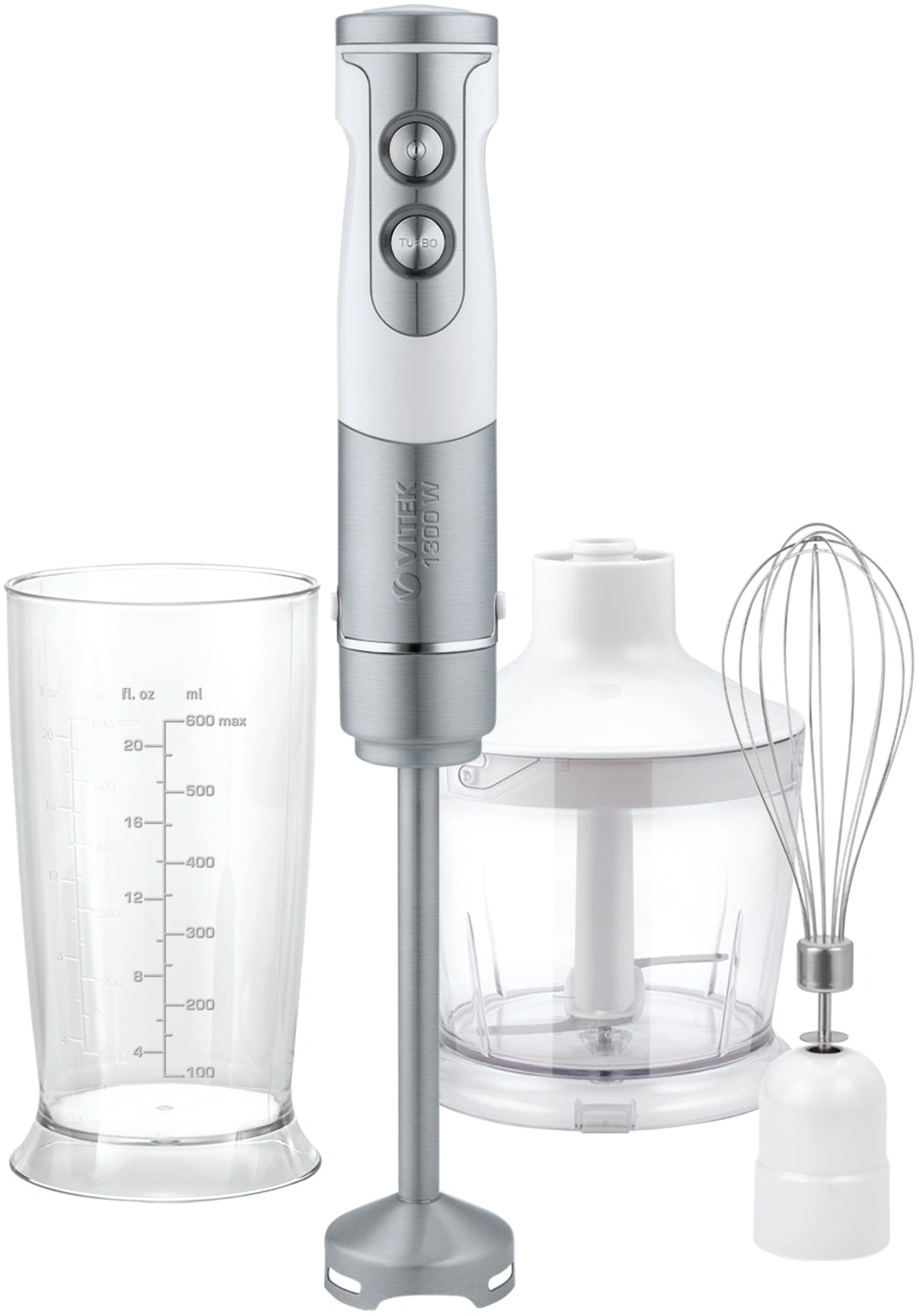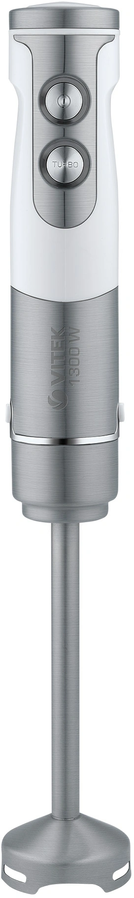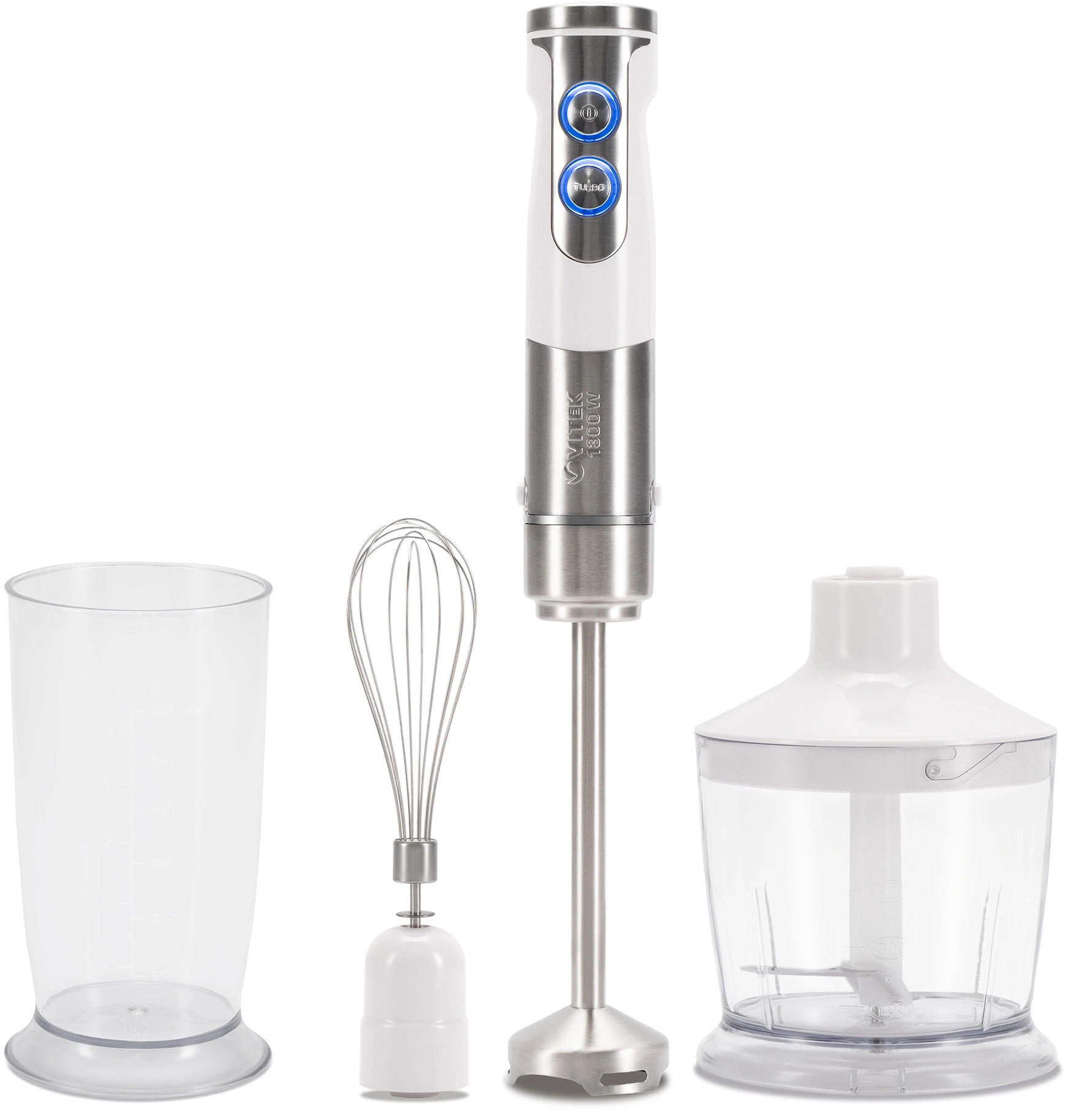 Идеально справиться со смешиванием или измельчением ингредиентов блюда способен погружной блендер VITEK VT-8543. В комплект к нему входят чаша объемом 500 мл, высокий стакан объемом 600 мл и насадка-венчик. Отличительной особенностью блендера является плавная регулировка 6-ти предусмотренных в приборе скоростей. А для самых сложных случаев в нем имеется режим TURBO, который легко справится даже с самыми твердыми ингредиентами. Нельзя не отметить и необыкновенный комфорт в эксплуатации устройства, который обеспечивает световой индикатор работы прибора — красивая LED-подсветка.