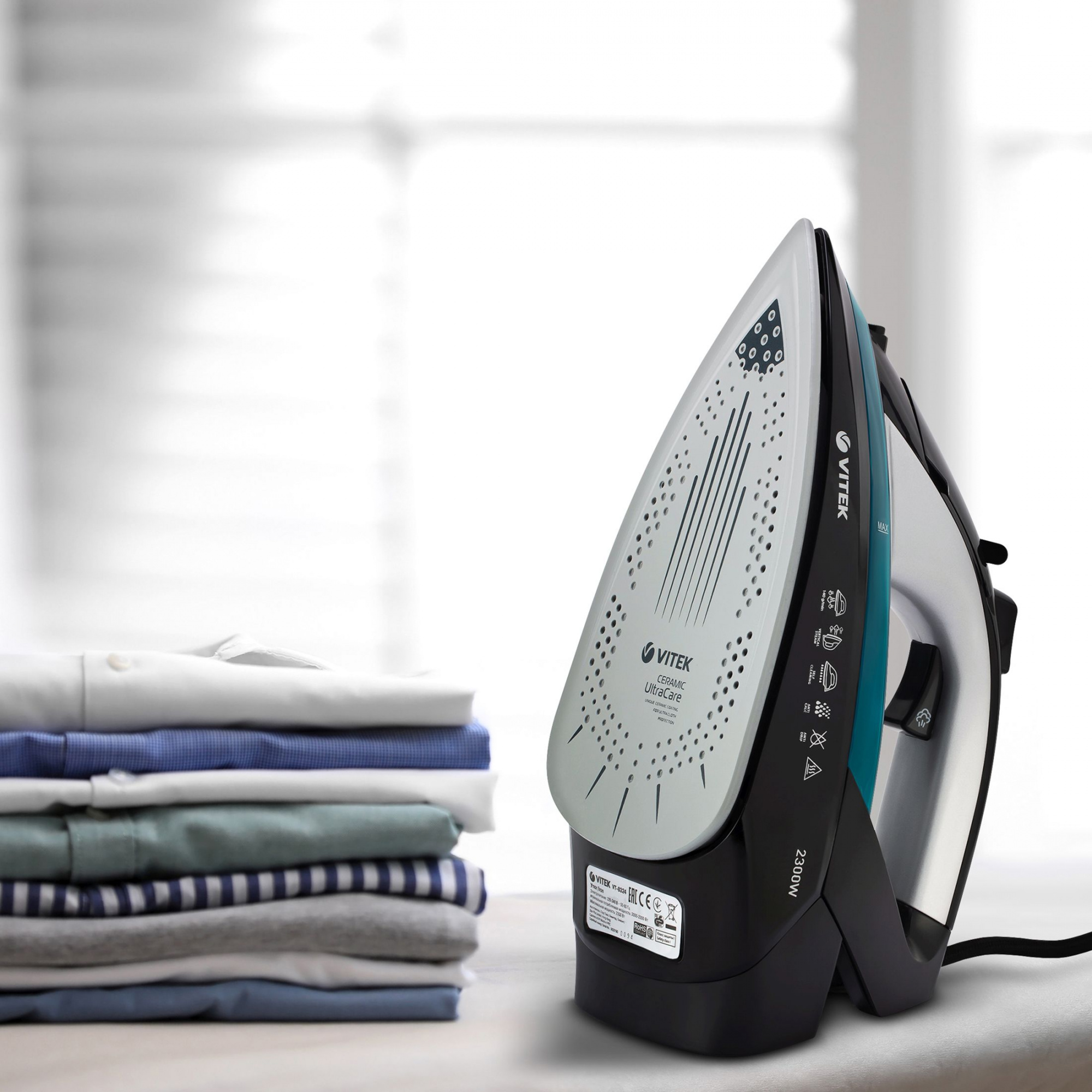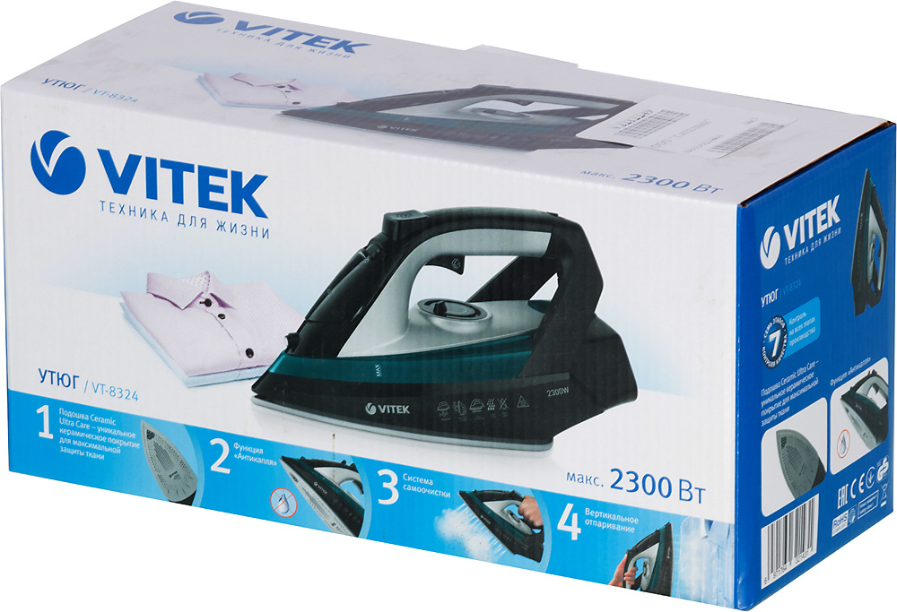 Эффектный дизайн, высокая функциональность, комфортность в использовании. Все это — об утюге VITEK VT-8324, подошва которого оборудована инновационным керамическим покрытием Ceramic UltraCare, которое делает процесс глажения удивительно легким. Утюг также оборудован надежной противокапельной системой, которая предотвращает вытекание воды, если вы используете низкие температуры. А благодаря функции самоочистки все загрязнения и возможная накипь из резервуара легко удаляются, что значительно продлевает срок службы утюга.