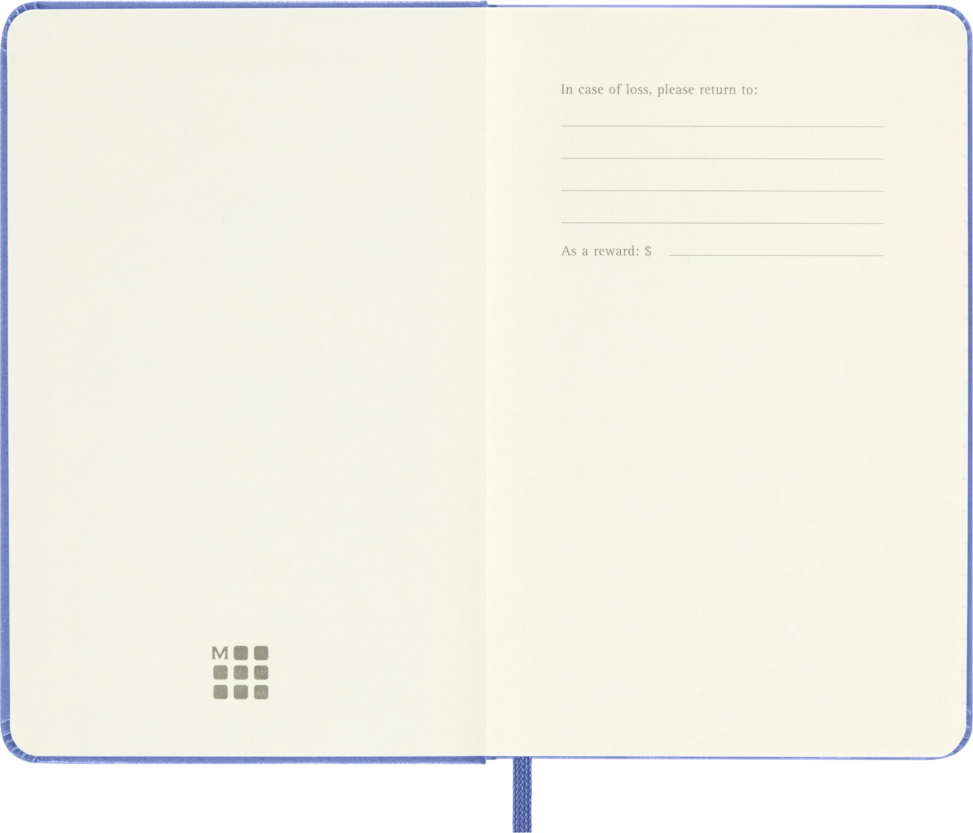 • Надпись «In case of loss» (В случае потери) на форзаце