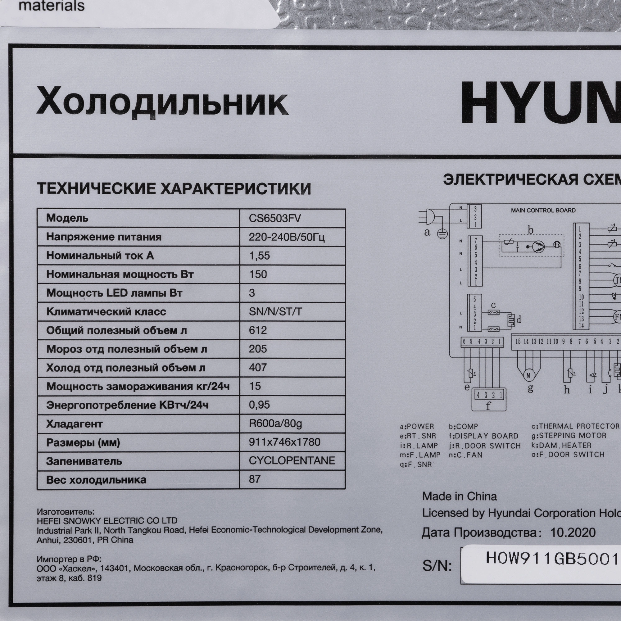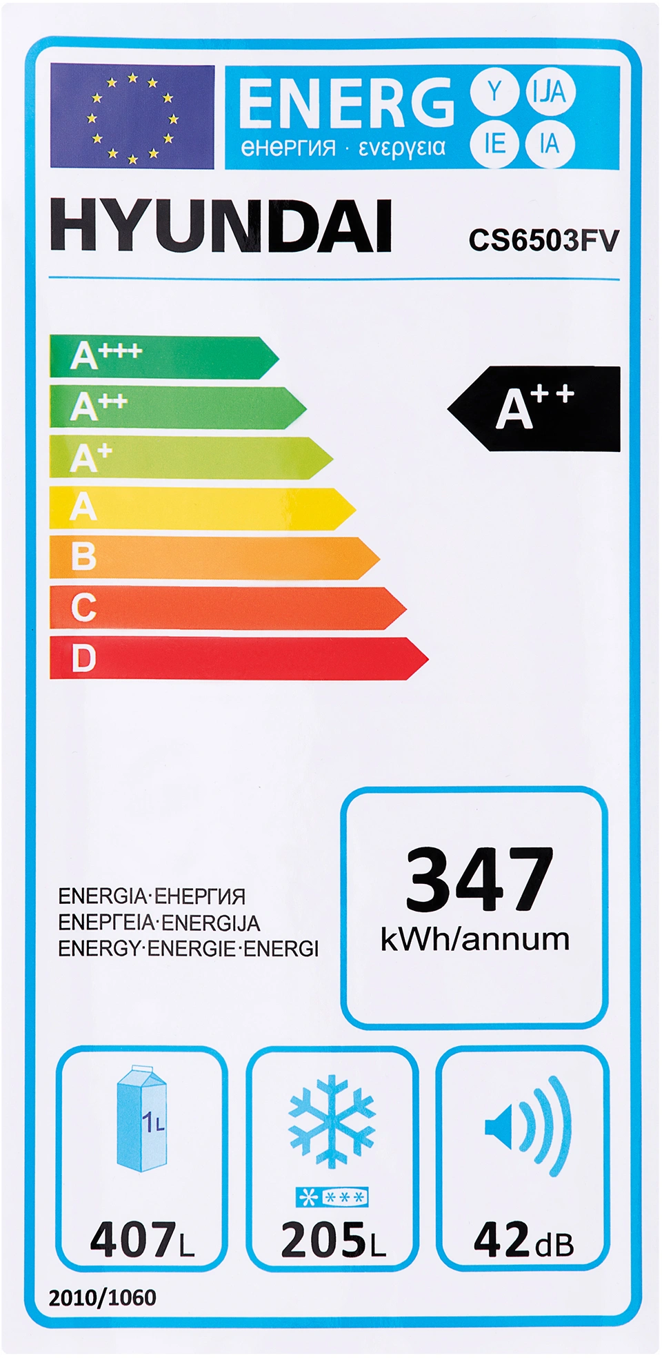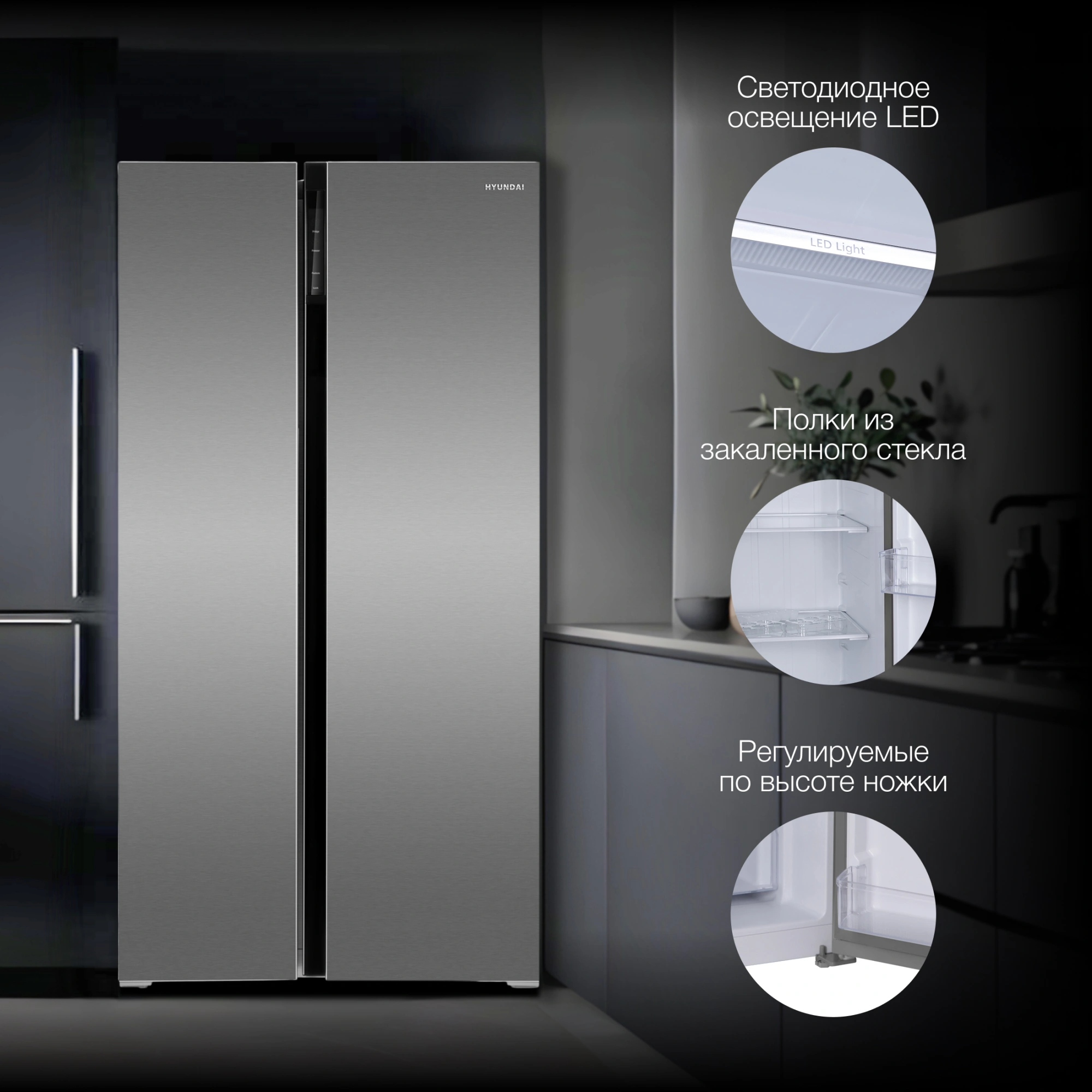 612 литров полезного объема спрятано за дверцами холодильника HYUNDAI CS6503FV, выполненного из устойчивой к загрязнениям и следам рук нержавеющей стали.