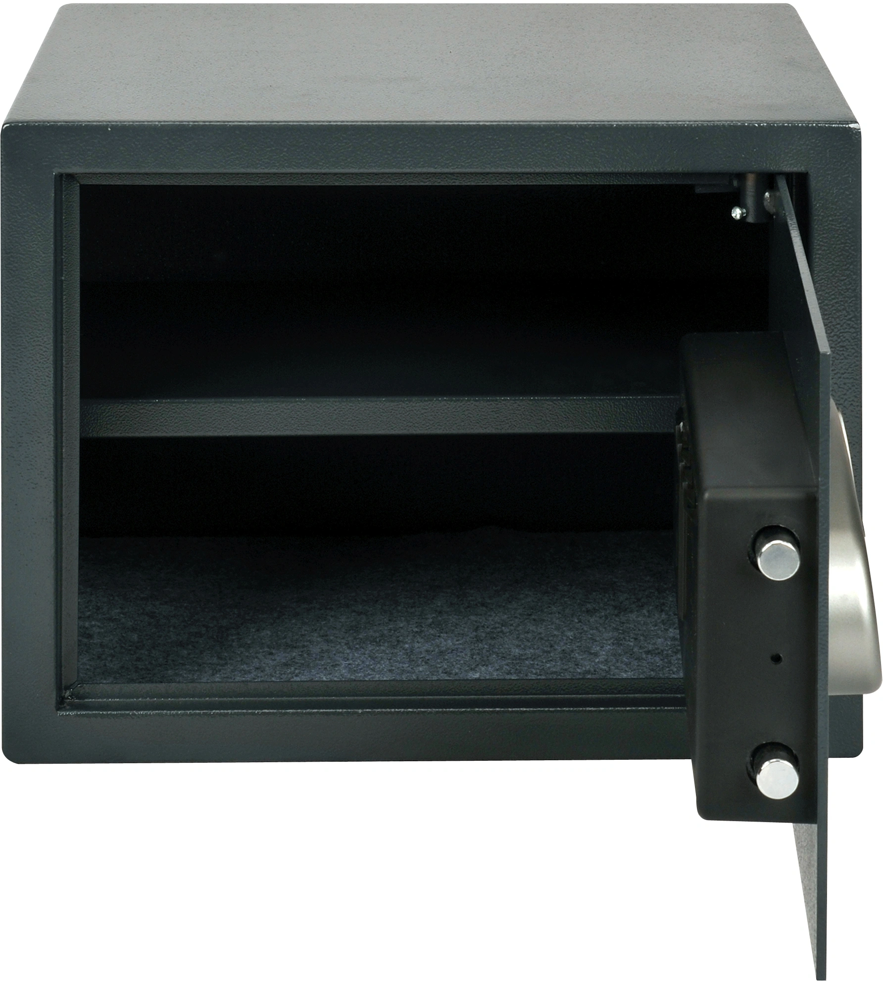 Графитовый цвет и лаконичный дизайн делают сейф универсальным для любого интерьера. Порошковое покрытие устойчиво к царапинам и внешним воздействиям.
